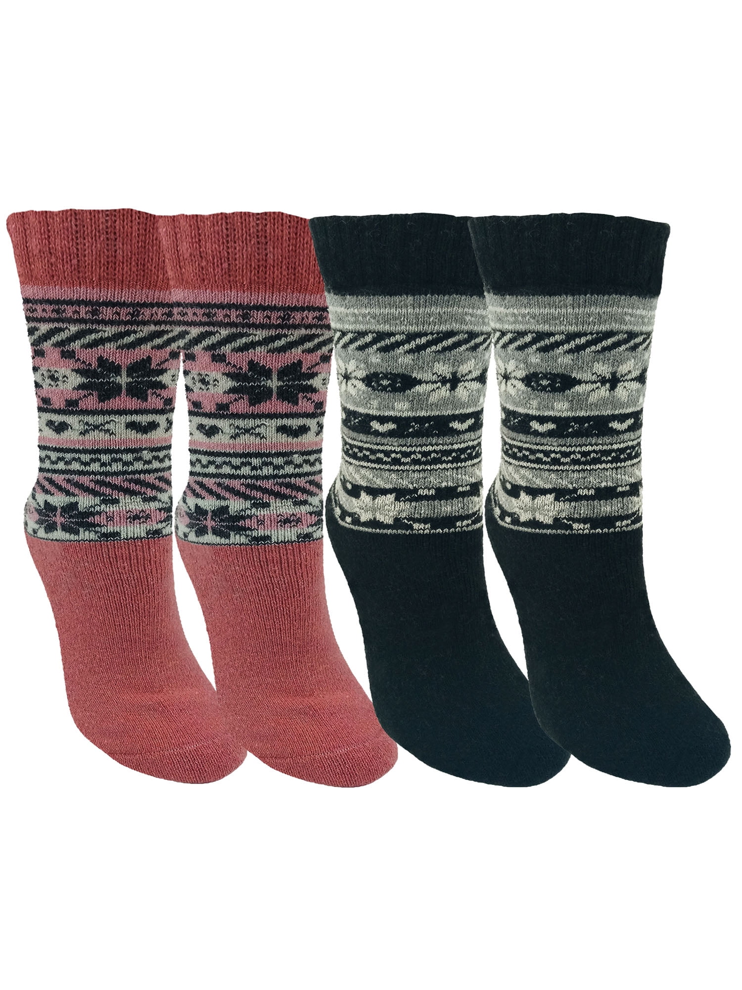 Womens Pink & Black 2-Pack Snowflake Heart Knit Lambs Wool Socks