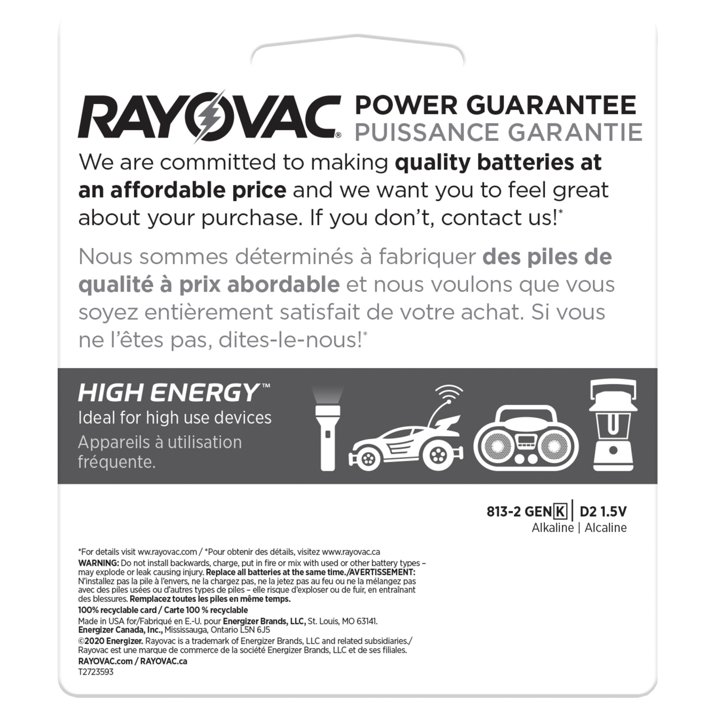 Rayovac High Energy D 1.5V Alkaline Batteries, 2 count