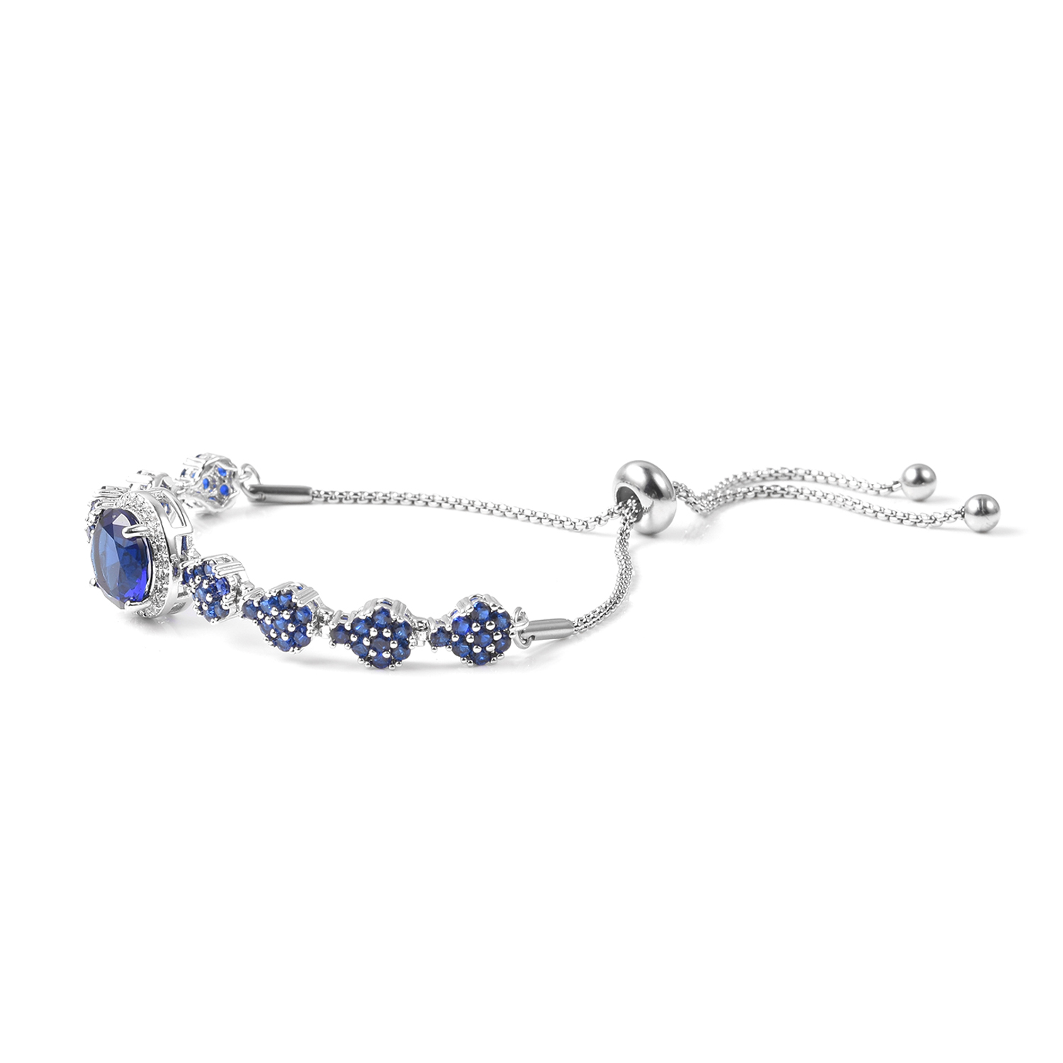 Shop LC Women Blue Sapphire White Cubic Zirconia Bolo Bracelet for Ct 3