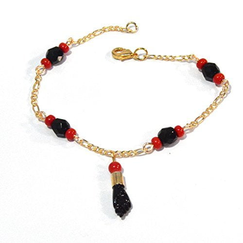 14KT KIDS GP HAND LUCKY CHARM EVIL EYE 5′ AZABACHE BLACK BRACELET