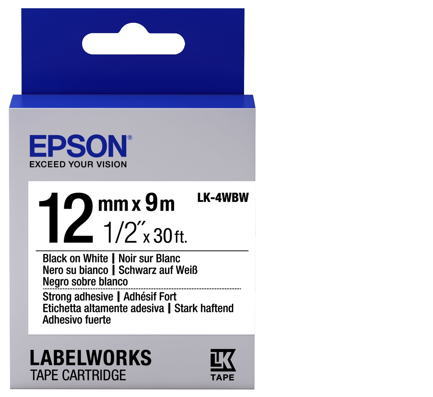 Epson LabelWorks LK-4WBW Label Maker Tape 1/2’W Black on White