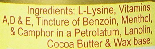 L-Lysine Ointment with Vitamins A, D & E plus Cocoa Butter. Aids in relief of cold sores, fever blisters, dry chapped lips, dry skin and minor skin irritations.