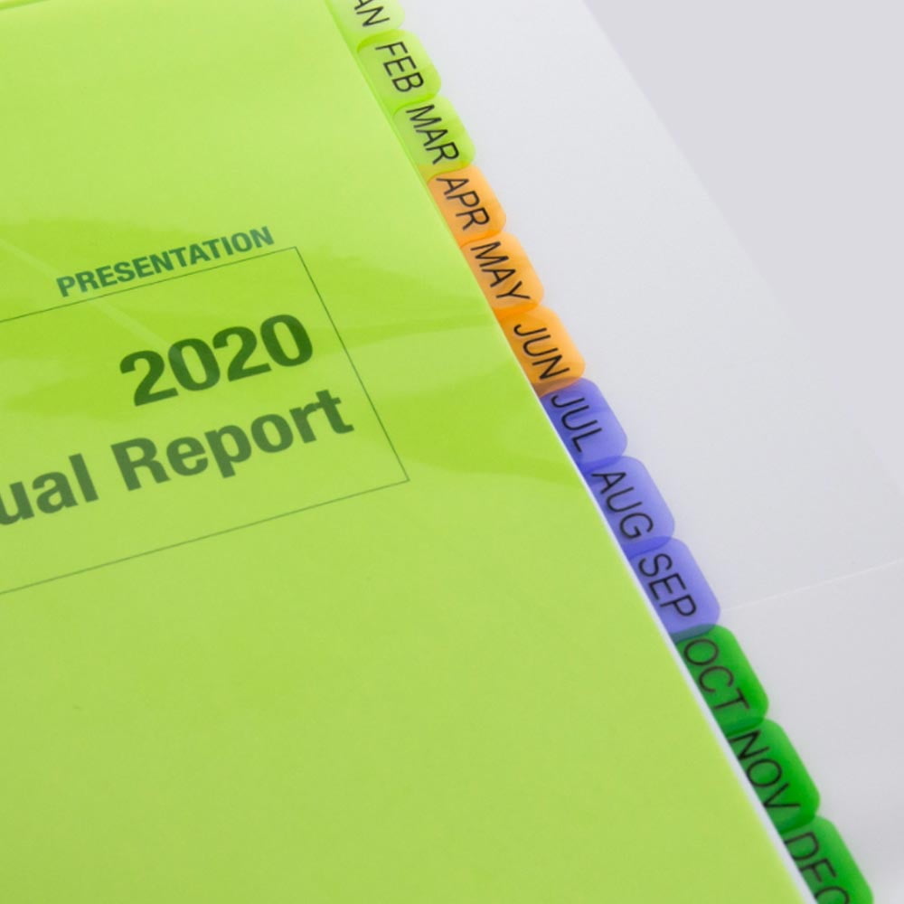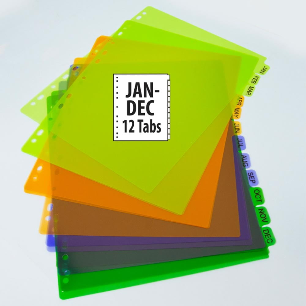 24PK Preprinted Plastic Dividers 12 Month Jan-Dec Multicolor Tabs Index 11 Holes Sturdy tab dividers made of durable PVC-free plastic.