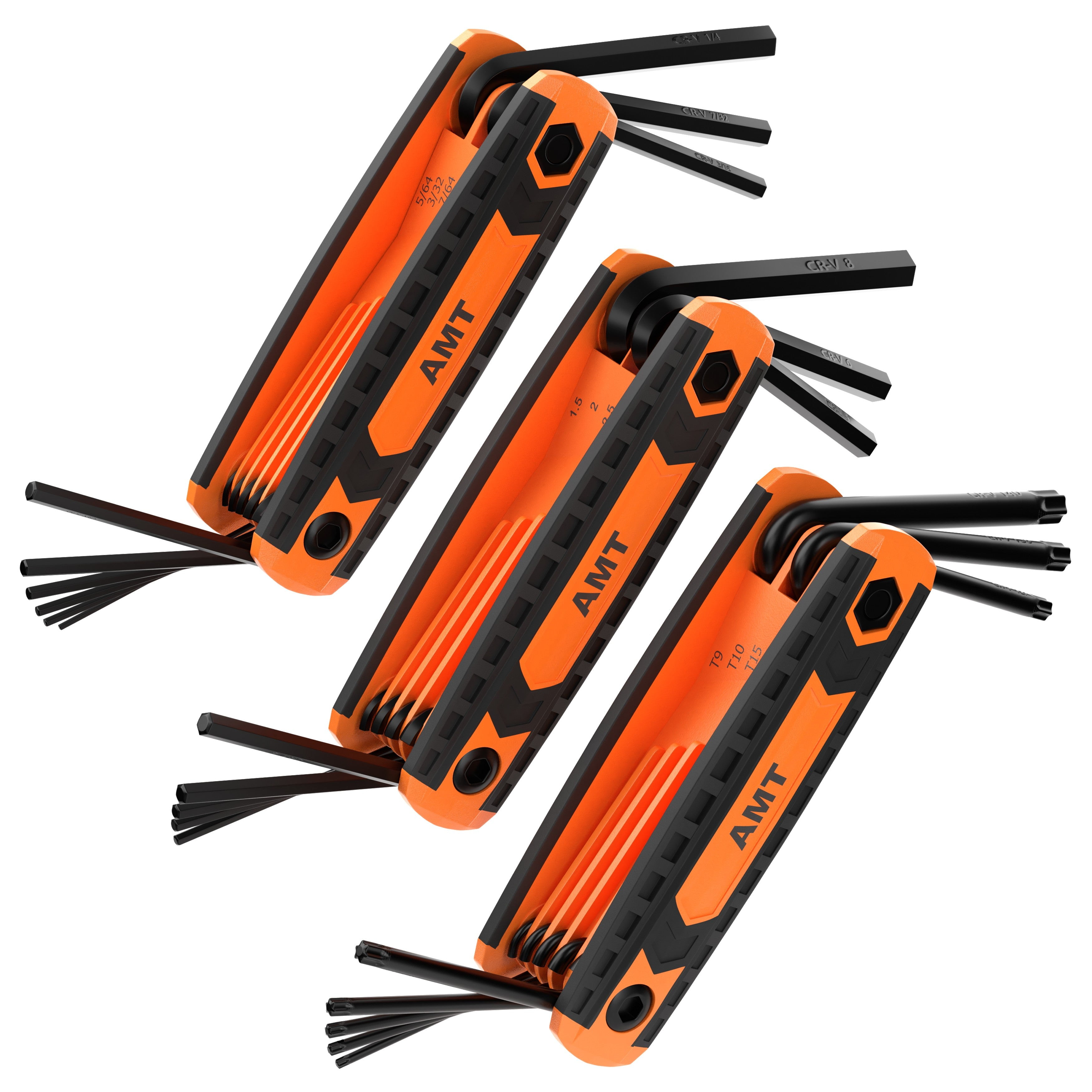 Compact Design: We designed our folding allen wrenches sets to be as compact and light weight as possible. Keep them in your toolbox, backpack or even your pocket. Their bright orange color makes them easy to spot when you need them.