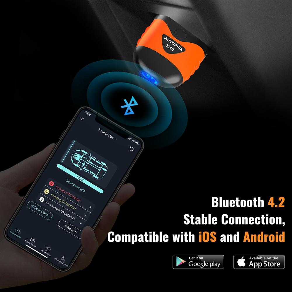 - Autophix 3210 auto code reader can be connected via Bluetooth use on Android / IOS phone, a necessary wireless/Bluetooth car diagnostic tool/fault code reader for today’s car owners.