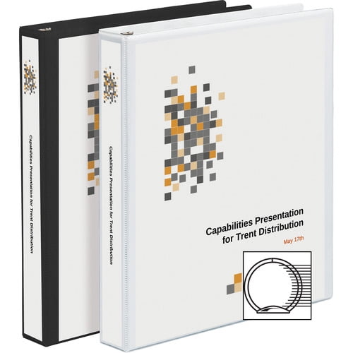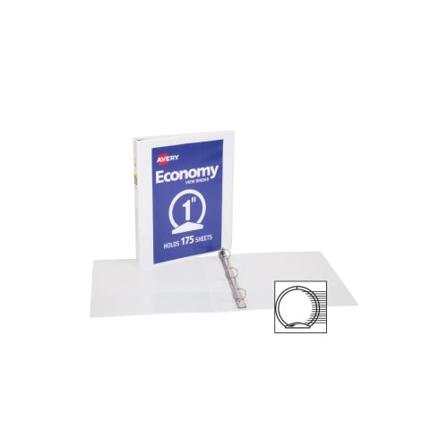 Discover sturdy simplicity in a convenient, lightweight package. This Economy View Binder offers a handy solution to your organization needs. Open and close the rings with ease to add or remove papers as needed. Metal round rings mounted on the back hold pages securely and let them lie flat. 1" ring capacity accommodates approximately 175 sheets. Tuck important handouts, pamphlets and other loose or unpunched paperwork into the two interior pockets for quick access. Each pocket holds up to 20 sheets. Put your personal stamp on the binder by designing a customized cover and slipping it into the overlays on the front, spine and back. You can find inspiration in the free, easy-to-use templates available online. Binder also features vinyl construction, a sturdy chipboard core and exposed rivets.