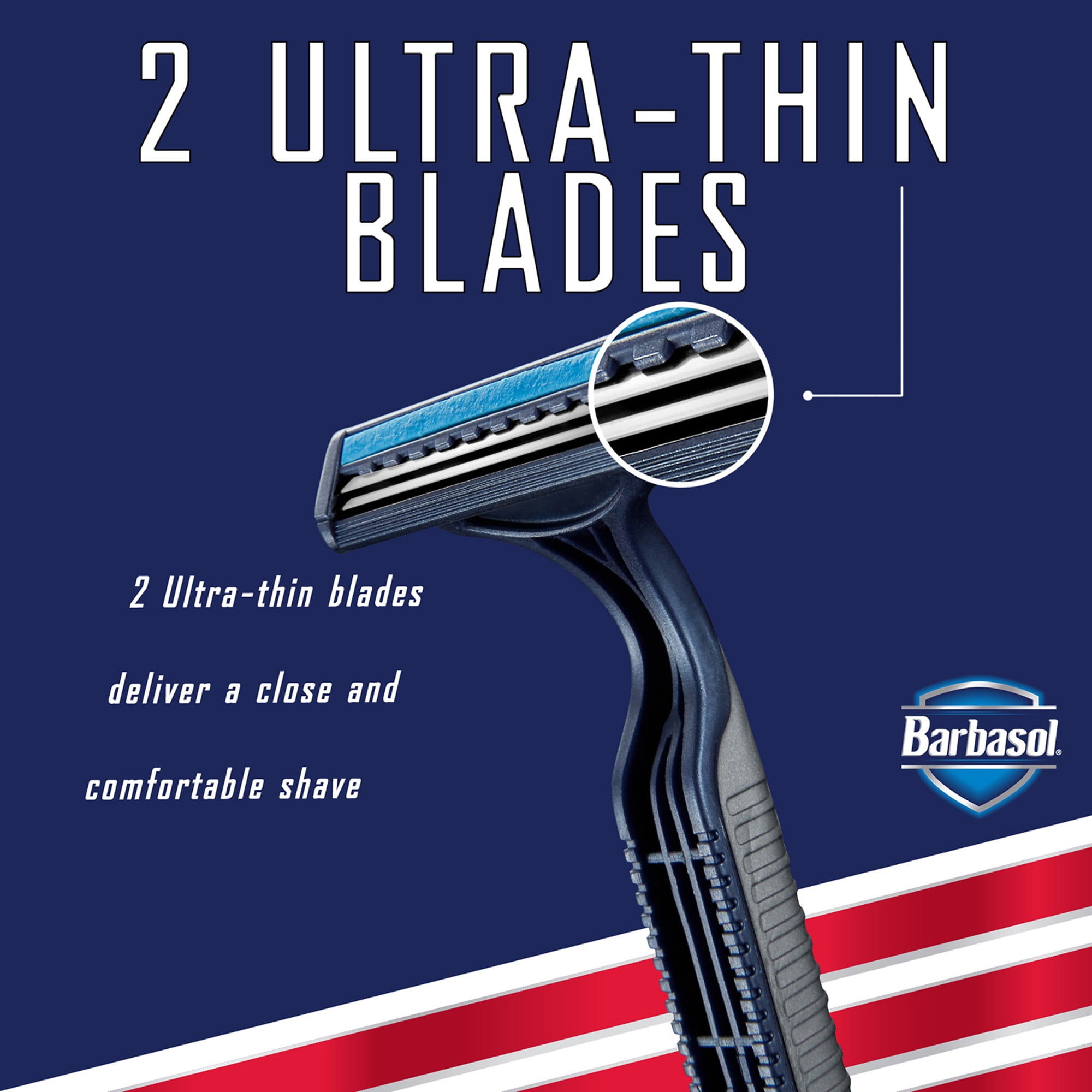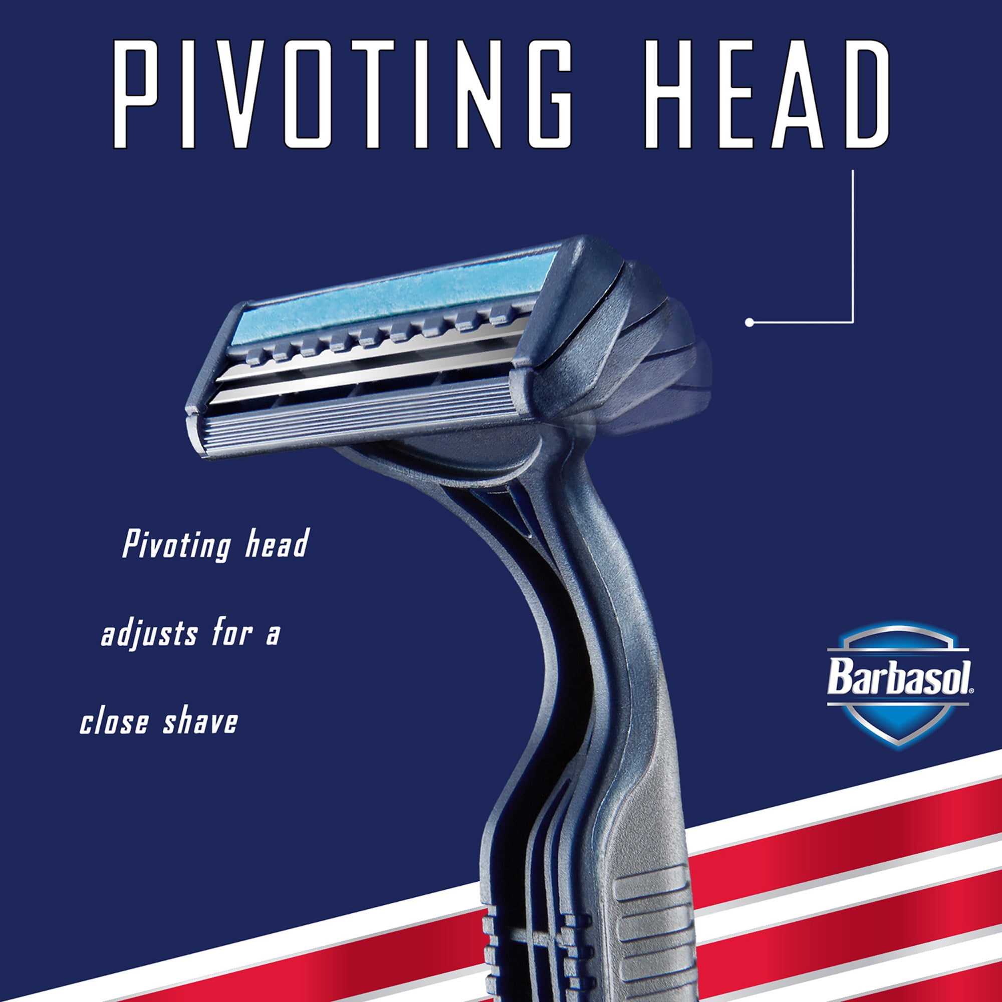 Barbasol Razors, from America’s leader for a close, comfortable shave!* The Barbasol Pivot Twin razor features Close Shave Technology that delivers ultra thin, open flow blades to allow for easy cleaning and long blade life. A comfort grip handle, lubricating strip and a pivoting head on the Barbasol Pivot Twin razor help to deliver a close and comfortable shave. Each pack includes ten Barbasol Pivot Twin disposable razors. For best results, use with Barbasol Shaving Cream.(*based on single brand shaving cream sales.)
