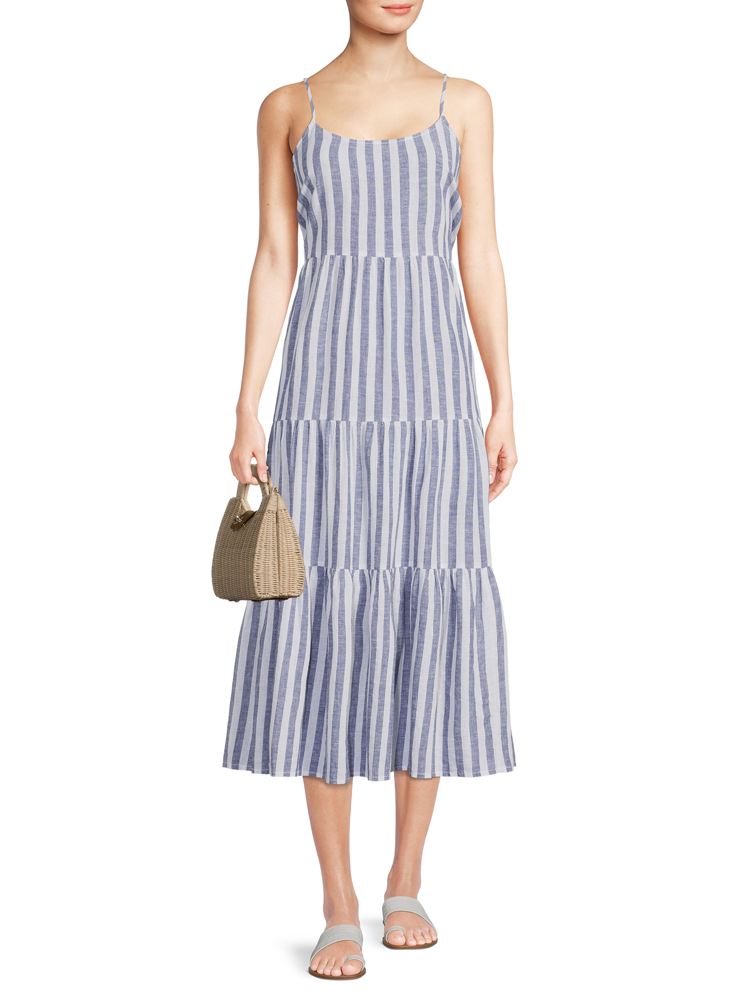 Be chic and comfortable in this Beach Lunch Lounge Women’s Tier Dress. Soft to the touch linen cotton and an adjustable strap adds instant comfort to your new spring and summer staple. This A-line dress comes in bold prints and cool colors to mix and match with your favorite accessories and sandals. Style with a sun hat to top your look!
