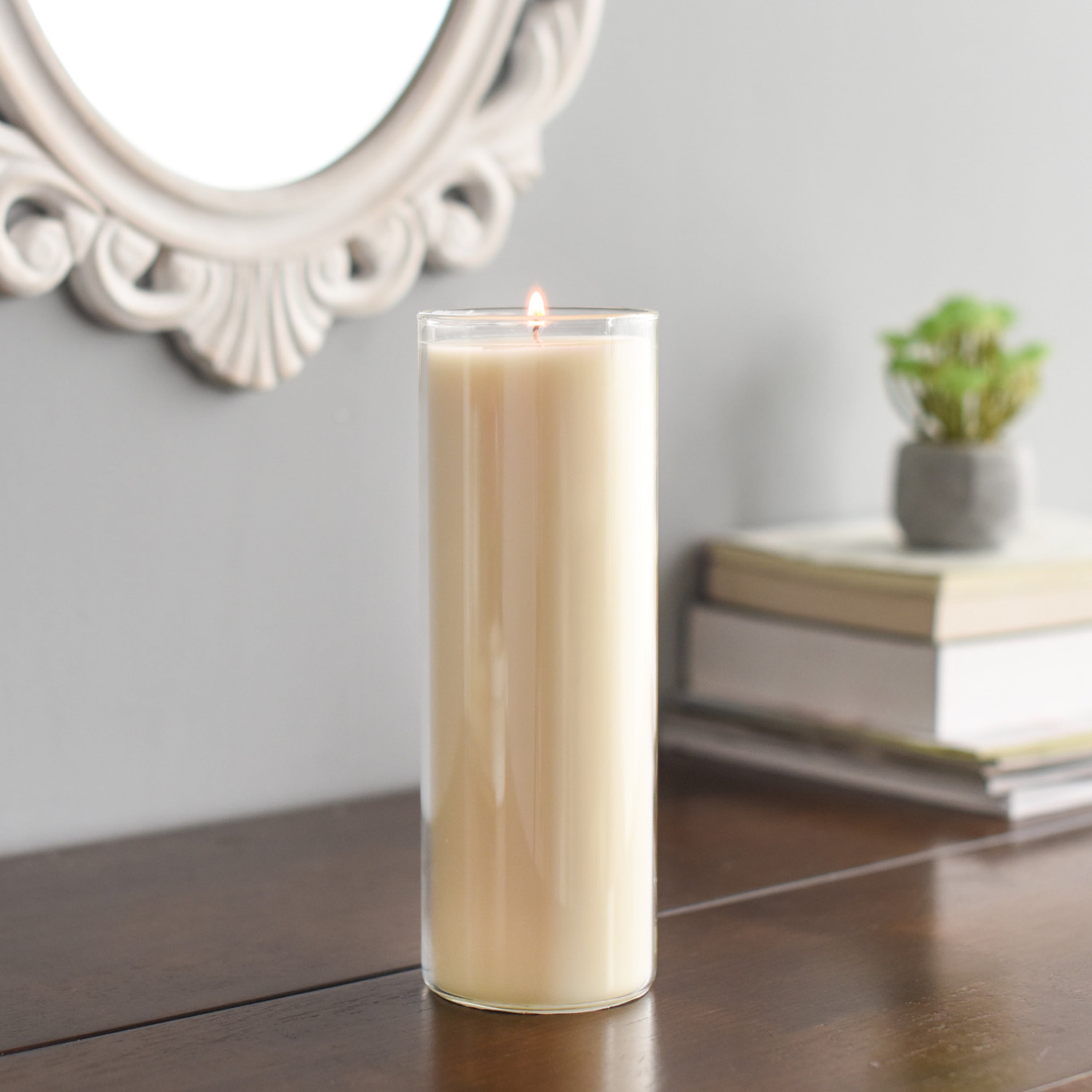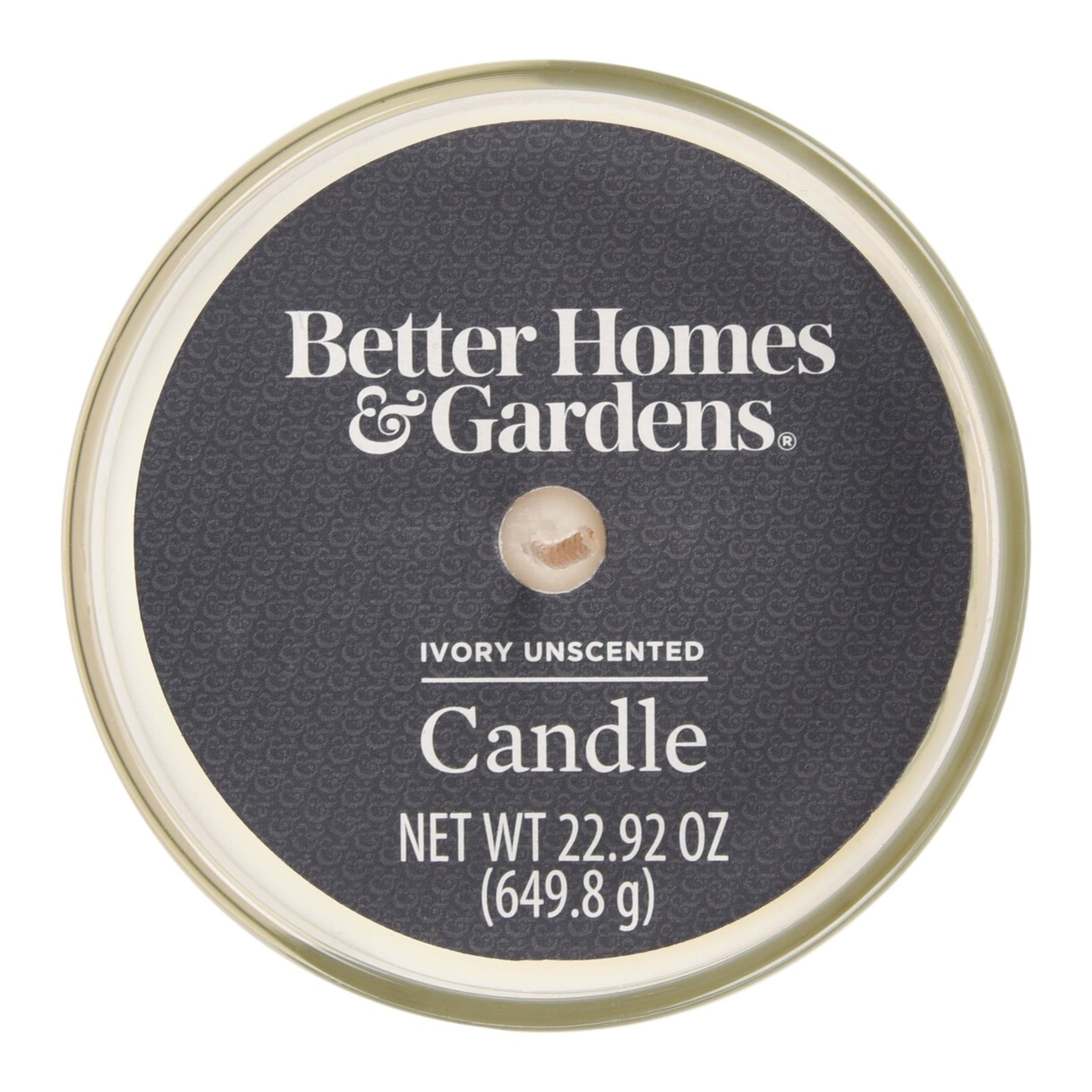 Better Homes & Gardens ivory unscented candle in a glass jar is a modern design that compliments any environment and makes for an elegant decor statement indoors or outdoors. The glow from these unscented pillar candles in the glass vase will add warm atmosphere to any moment. Use this all-purpose candle to create captivating tablescapes for weddings and dinner parties or use it in your home and add style and gentle ambiance in living rooms and bedrooms. The glass jar is classy and versatile in use. Pair the unscented candle with smaller ones to create a tasteful lighting display. These 12" pillar candles will last long as they boast 100 hours of burn time. Suitable for indoor and outdoor decor use. For optimal performance, trim the cotton wick to 1/4" before lighting.