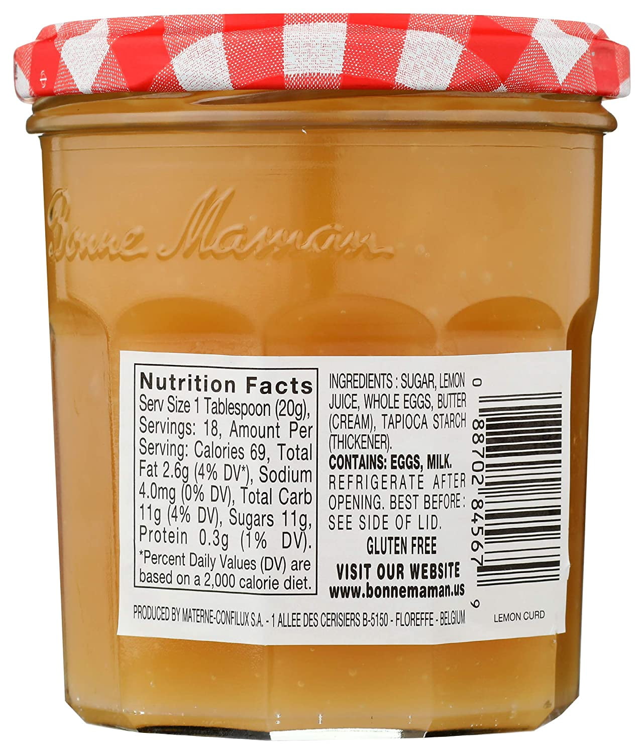 The Bonne Maman Lemon Curd is joyfully sweet with a bright, clean lemon flavor. Its lovely yellow color and rich, velvety texture is sure to please consumers. By the spoonful or as an ingredient, the versatile Bonne Maman Lemon Curd enhances any recipe, whether used as a spread, a topping or for baking. Bonne Maman Lemon Curd is also gluten free.