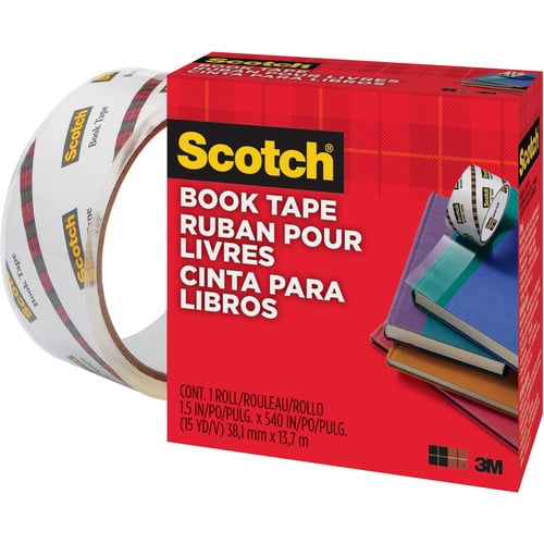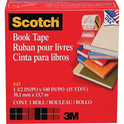 Excellent for repairing, reinforcing, protecting and covering bound edges and surfaces. Use on books, magazines, pamphlets, record album jackets and more.Scotch Book Tape is excellent for repairing, reinforcing, protecting and covering bound edges and surfaces. Use on books, magazines, pamphlets, record album jackets and more. Tape Type: Binding/Archiving; Adhesive Material: Acrylic; Thickness: 3.4 mil; Size: 1 1/2" x 15 yds.