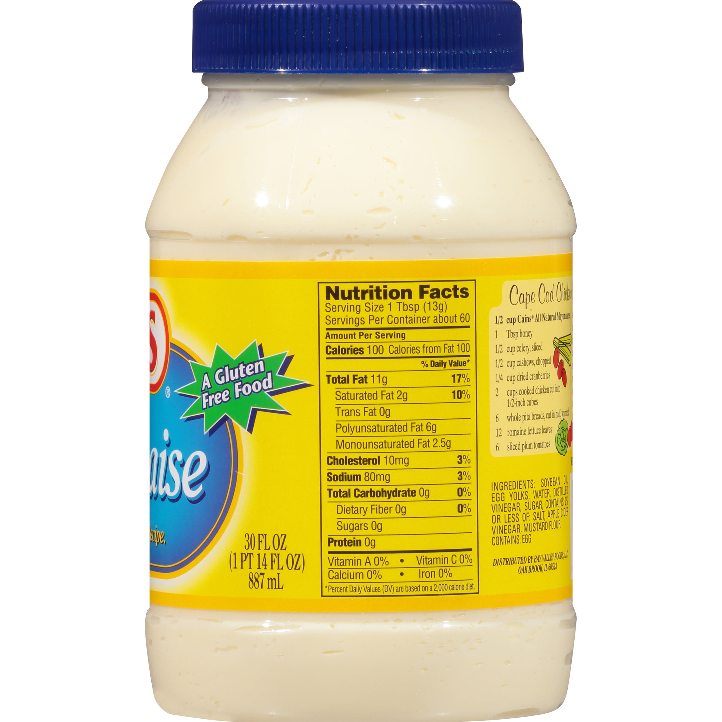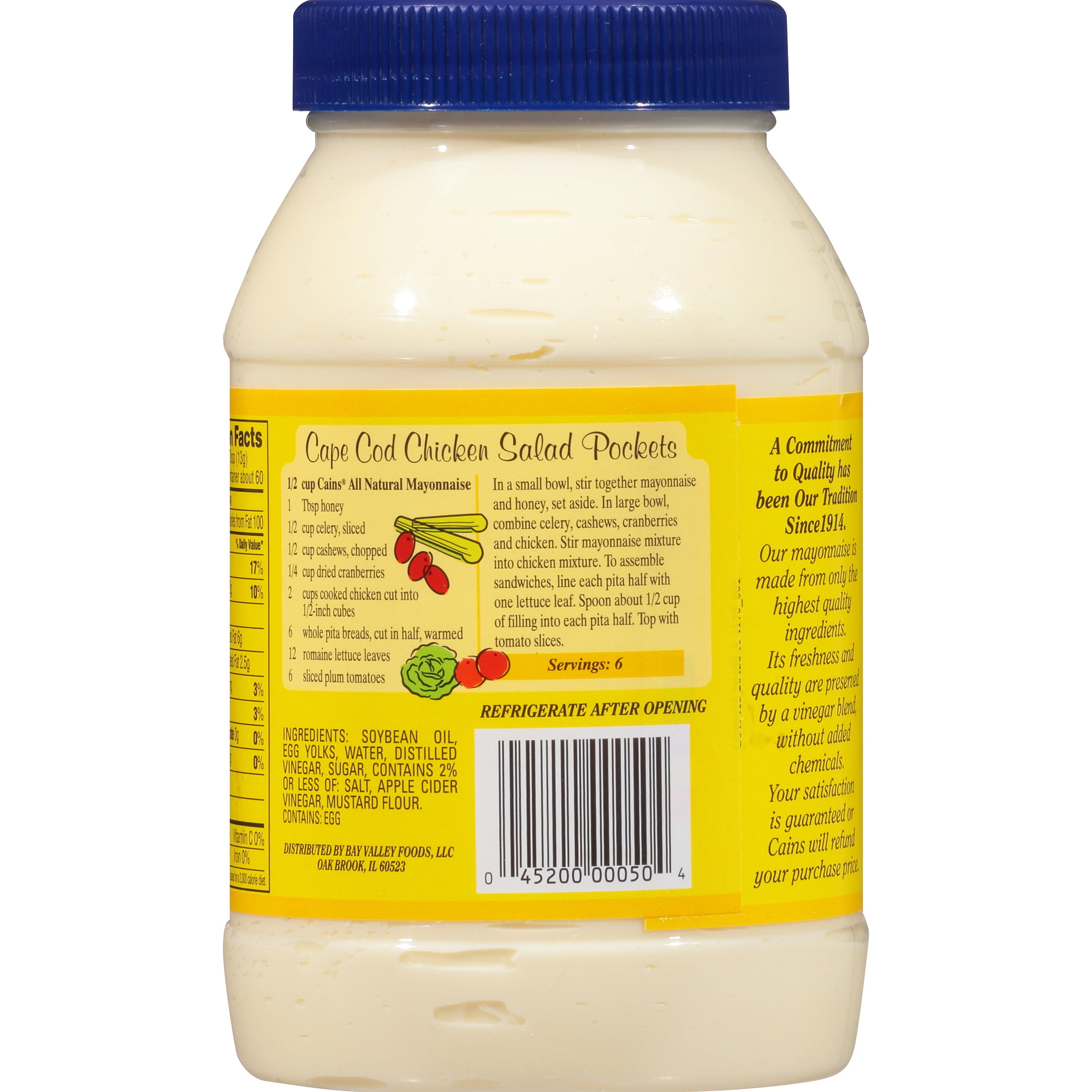 A commitment to quality has been our tradition since 1914. Cains Mayonnaise is made from all natural ingredients. A favorite among consumers, it makes for a delicious condiment to pair with sandwiches, dressings and salads. Coming in a 30 ounce container there is plenty of this wonderful mayo to go around! Cains Mayonnaise is made with no artificial additives or preservatives. This kosher mayo is preserved by a natural vinegar blend without added chemicals. It is made from an original Cains recipe with only whole food ingredients including soybean oil, egg yolks, distilled vinegar, water, sugar, salt, cider vinegar and spices. Choose to add wonderful flavor to your food when you choose Cains Mayonnaise