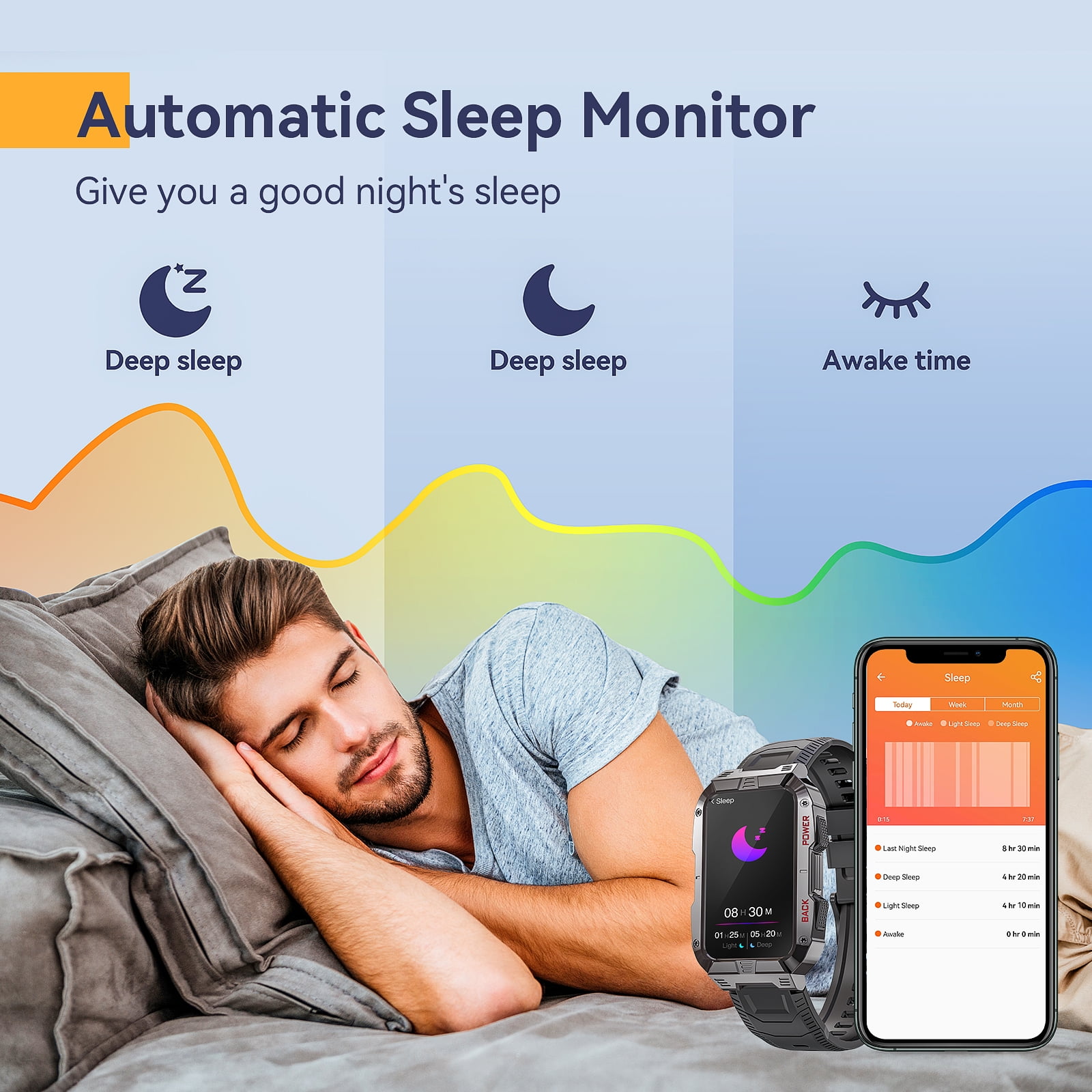【24/7 Heart Rate Monitor & Sleep Tracker】Automatically monitors your real-time heart rate and manually detects your blood oxygen, and provides a comprehensive analysis of your sleep quality (deep sleep, light sleep, and awake time) to help you develop healthier lifestyle. (Note: The data cannot be used for medical purposes and are for reference only).