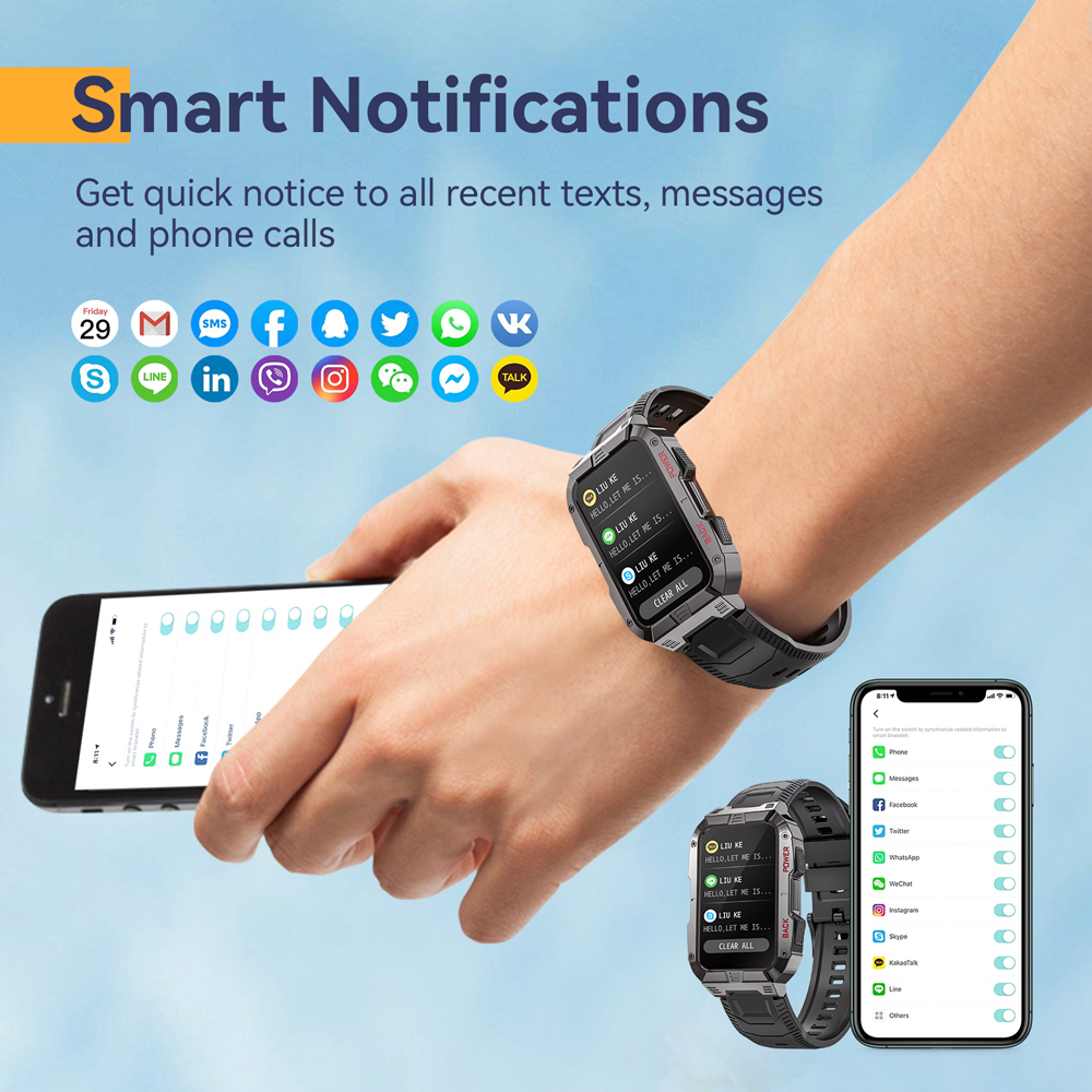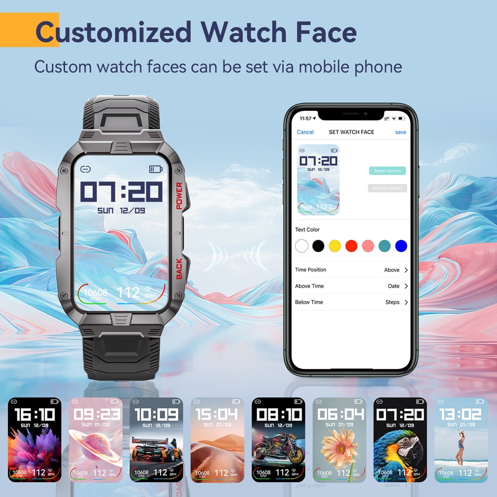 【MESSAGE NOTIFICATIONS AND MORE UTILITIES】Connect this smartwatch with your phone, you can receive notifications from Facebook, WhatsApp, Instagram, etc., and even hang up. It won’t let you miss important things. There are also a lot of handy features like timer, stopwatch, find device, sedentary reminder, music control and weather display (Note: this watch cannot reply to messages and make calls.)