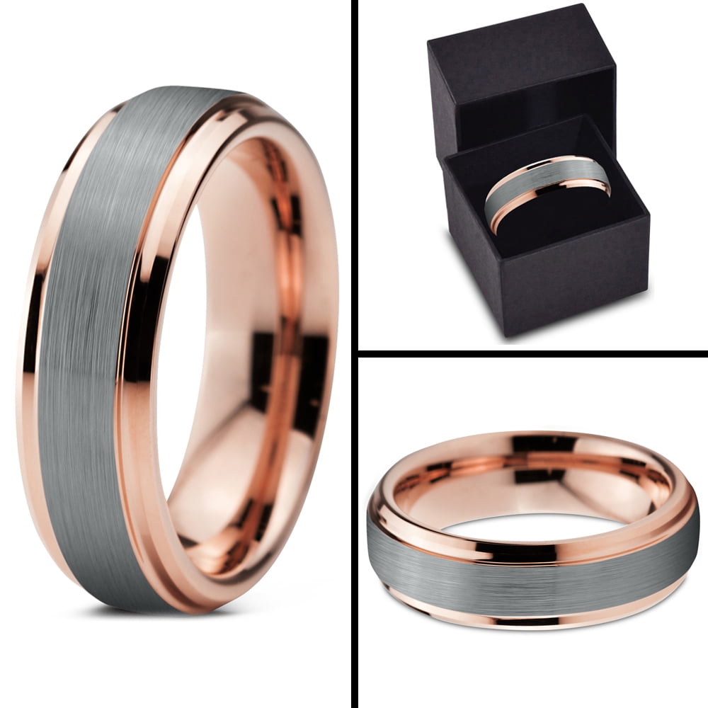 Charming Jewelers Tungsten Wedding Band Ring 6mm for Men Women Comfort Fit 18K Rose Gold Plated Plated Beveled Edge Brushed Polished Lifetime Guarantee