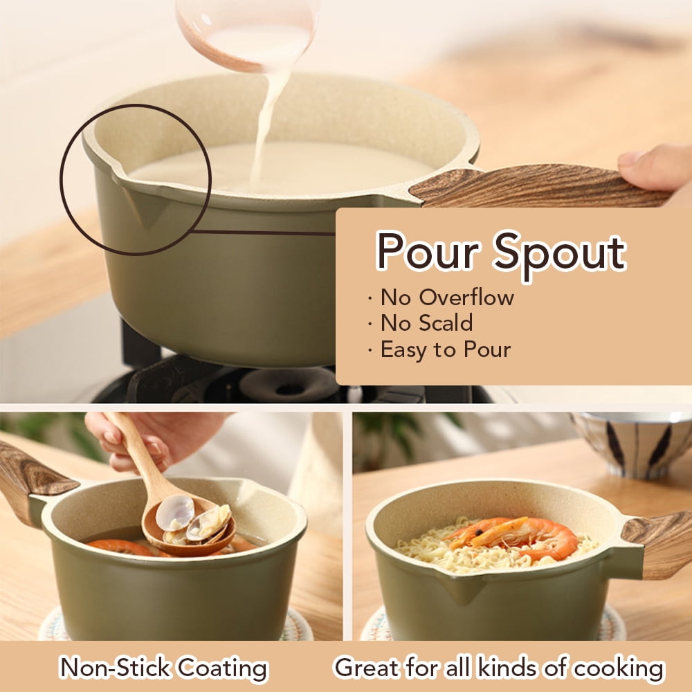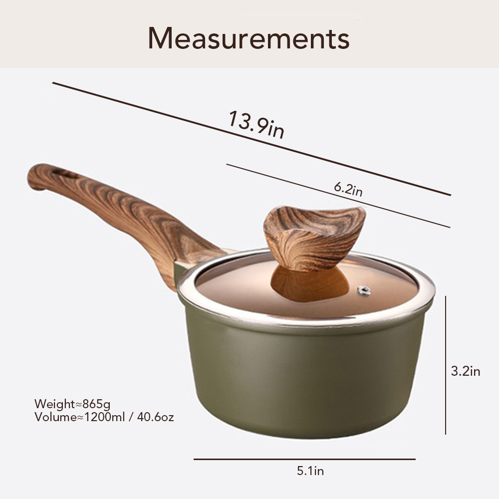 GRANITE COATING – Eco-friendly natural stone material. PFOA FREE.NON-STICK & EASY TO CLEAN– The nonstick interior is made of aluminum, which is durable, sturdy, and super easy to clean up. PERFECT HEAT DISTRIBUTION – Aluminum encapsulated base not only heats quickly and spreads heat evenly but also eliminates hot spots. Works on Induction, gas, electric, glass, ceramic, halogen, etc. and it is dishwasher safe.(Not for oven) BAKELITE HANDLE – The bakelite handle stays cool while cooking and is comfortable to grip. MEASUREMENTS – 6.5"" Width x 3.41"" Height (without handle).