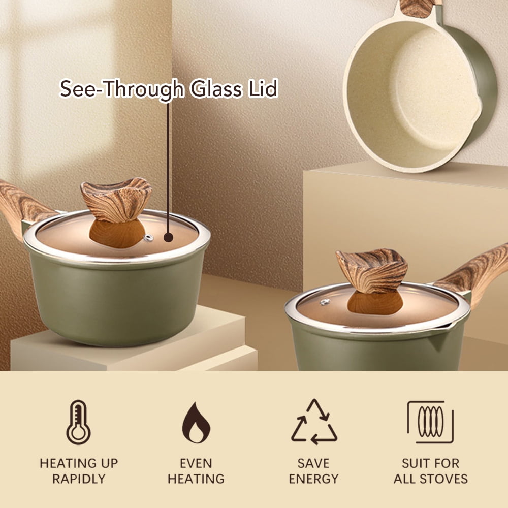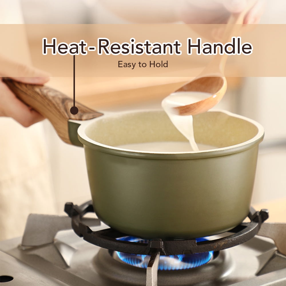 - PERFECT HEAT DISTRIBUTION – Aluminum encapsulated base not only heats quickly and spreads heat evenly, but also eliminates hot spots. Works on Induction, gas, electric, glass, ceramic, halogen, etc. and it is dishwasher safe.(Warning: Not for oven)