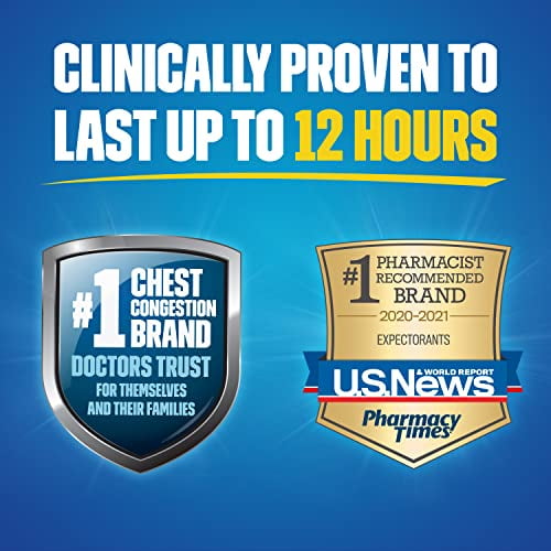 Chest Congestion, Mucinex 12 Hour Extended Release Tablets, 40ct, 600 mg Guaifenesin Relieves Chest Congestion Caused by Excess Mucus, #1 OTC expectorant