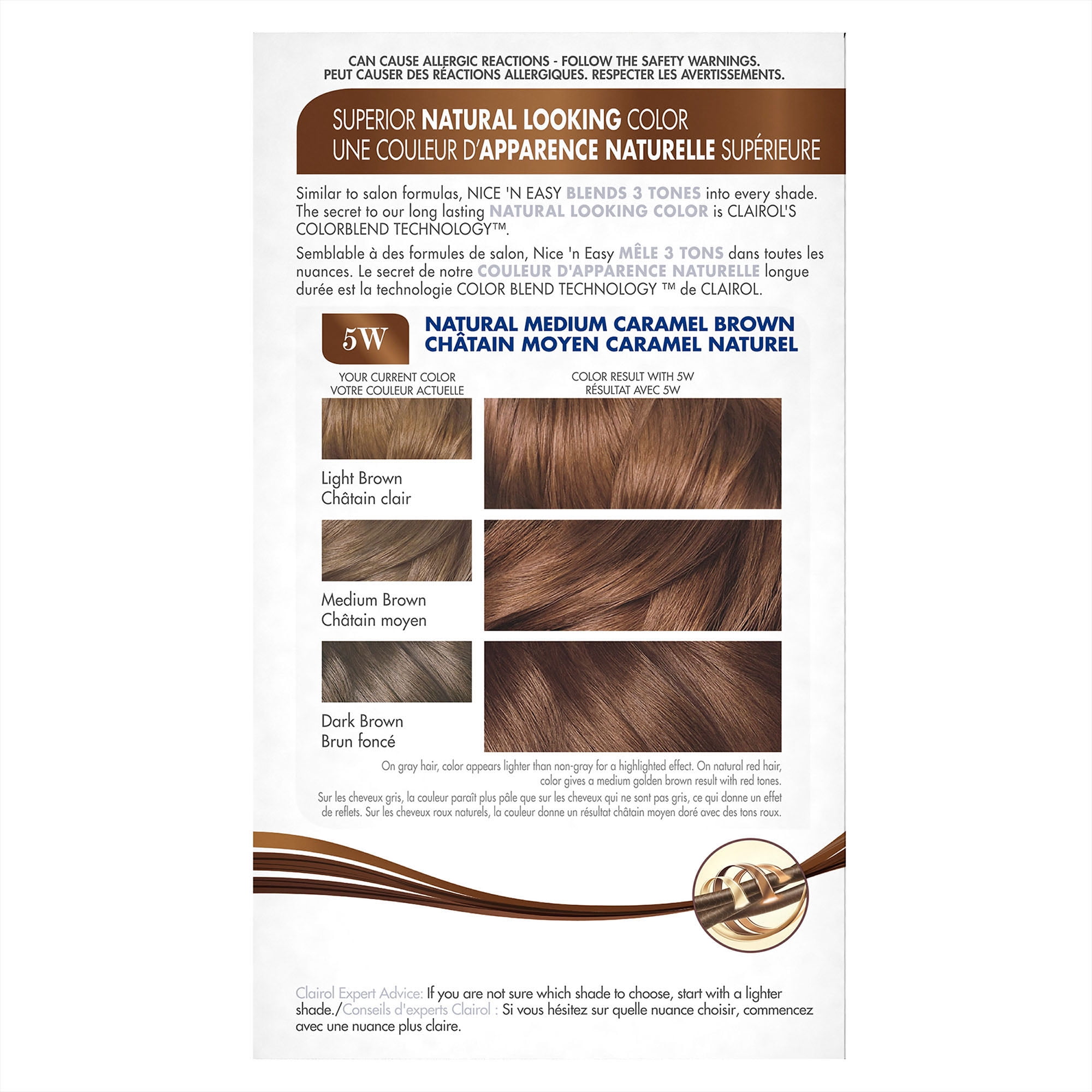The secret to our natural looking color is Clairol’s exclusive ColorBlend Technology, which expertly blends 3 complementary tones into every shade. The result? Natural looking color that’s perfectly true to you!Clairol Nice ‘n Easy Permanent Hair Color, 5W 118B Natural Medium Caramel Brown, 1 Kit