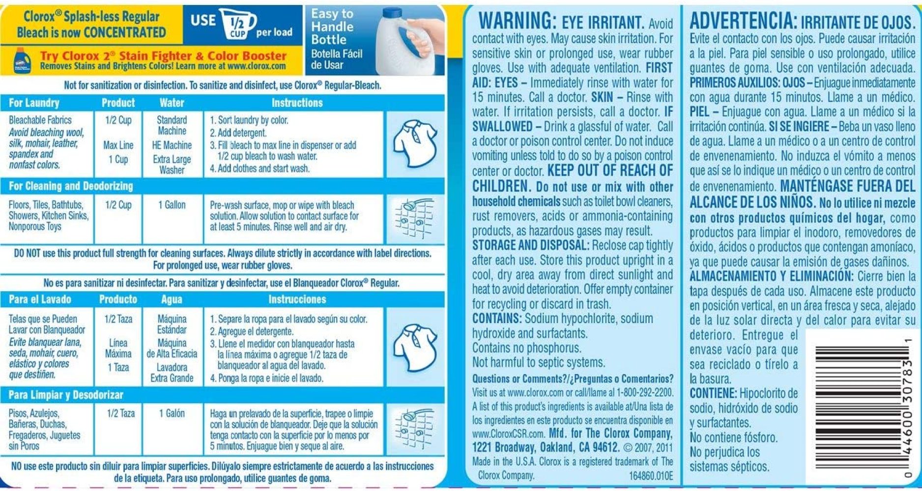 - The trusted leader in cleaning, Clorox Splash Less Bleach can be used in standard and high efficiency washing machines and is great for everyday cleaning