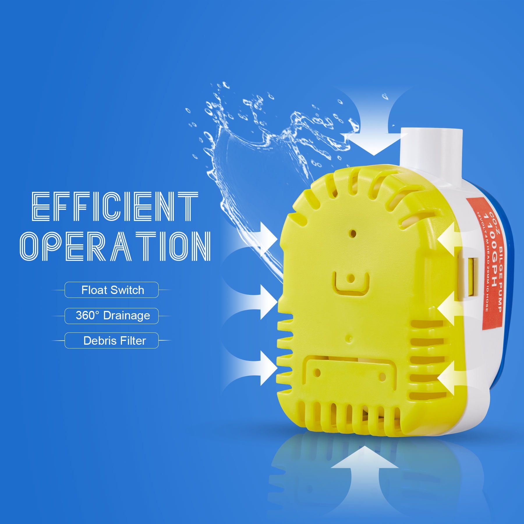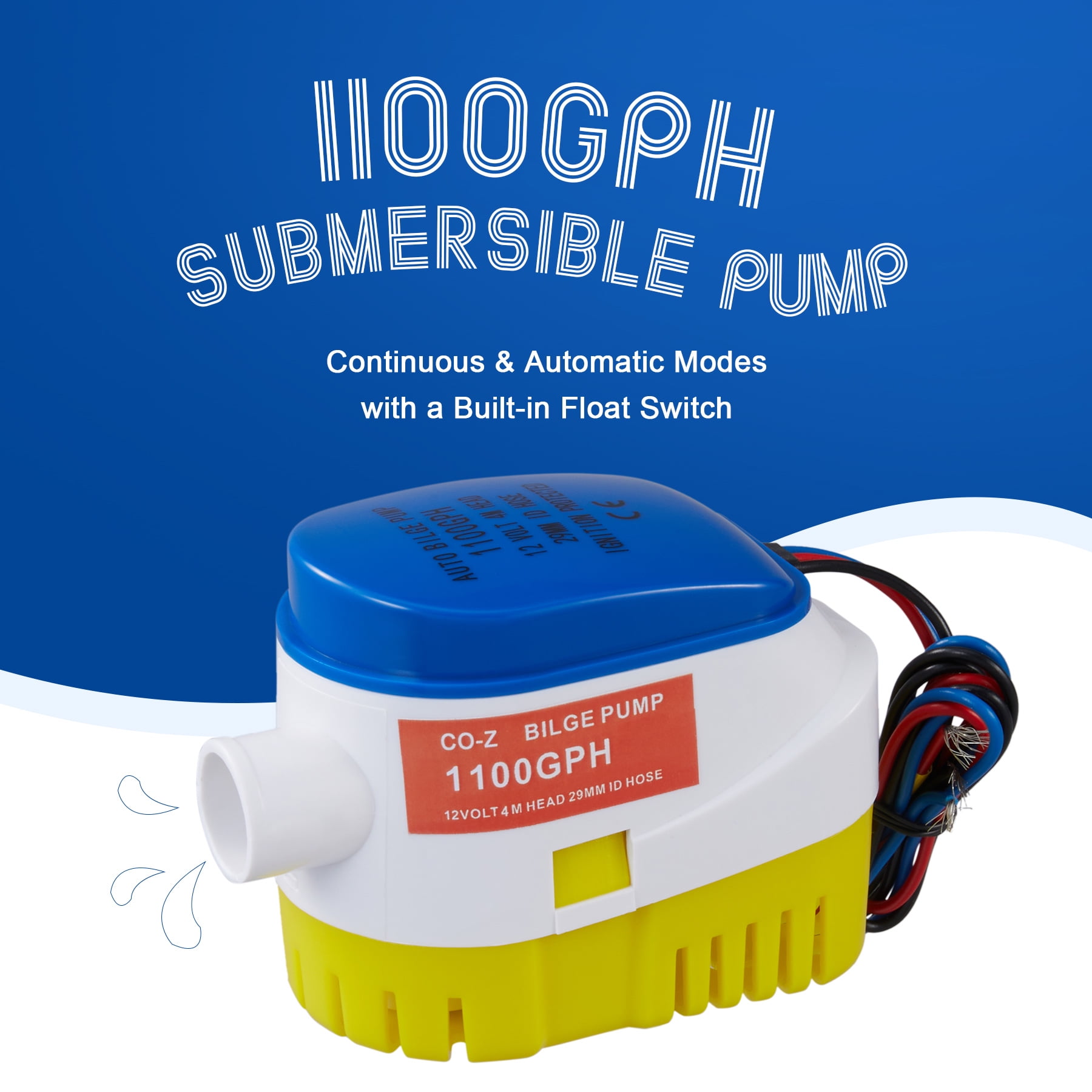 CO-Z 1100gph Bilge Pump for Boats Pools Ponds and More 12V Submersible Automatic Pump