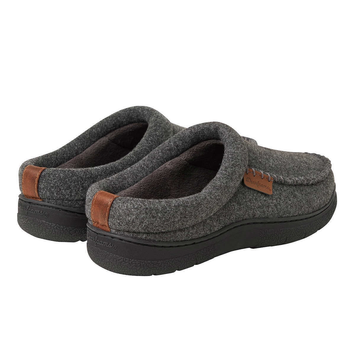 Wool blend textile upper TPR outsole Moisture wicking DF adapt keeps feet cozy and dry Memory foam cushioned insole Easy on/off Made in ChinaDearfoams Men’s Slipper Dark Heather Grey Large (11-12)