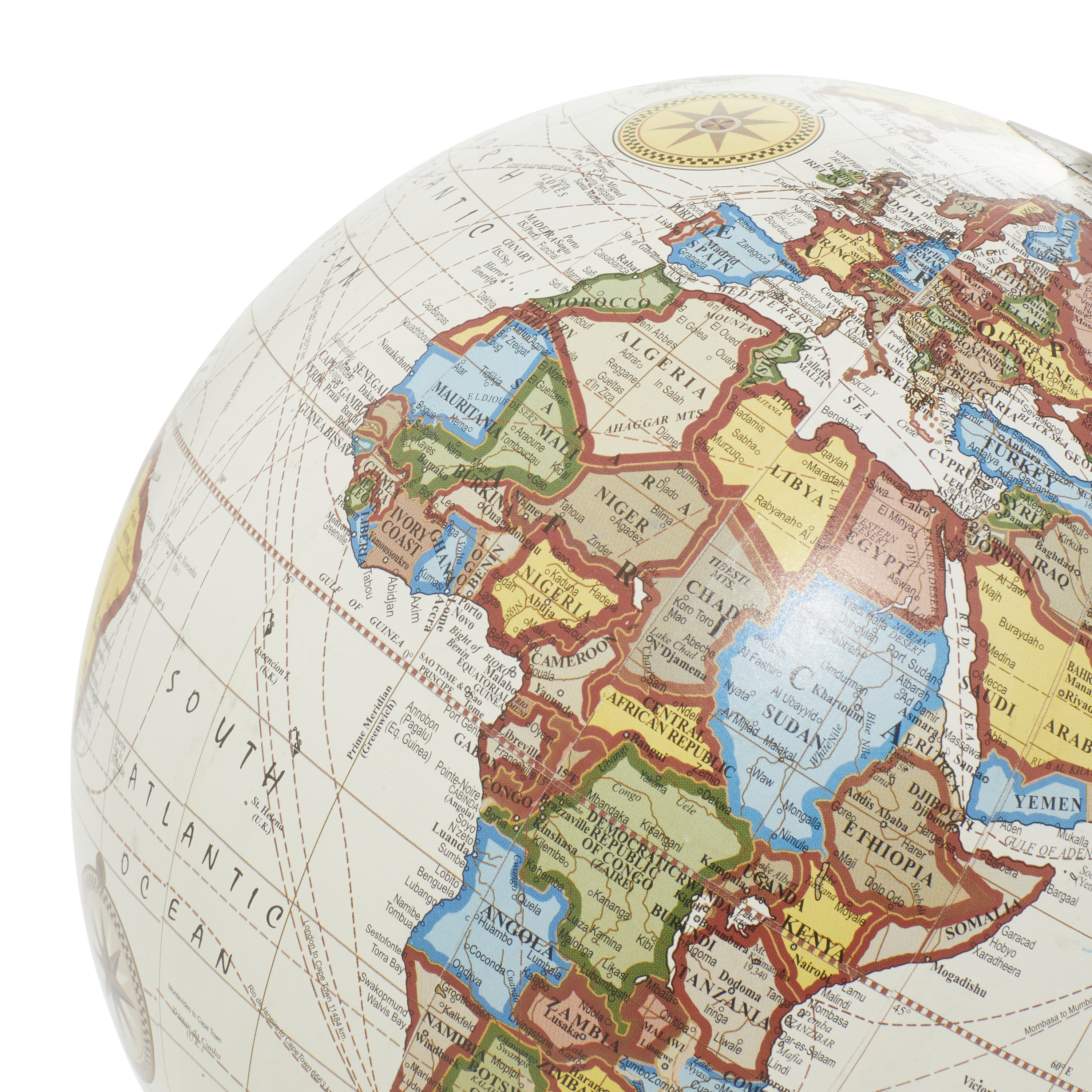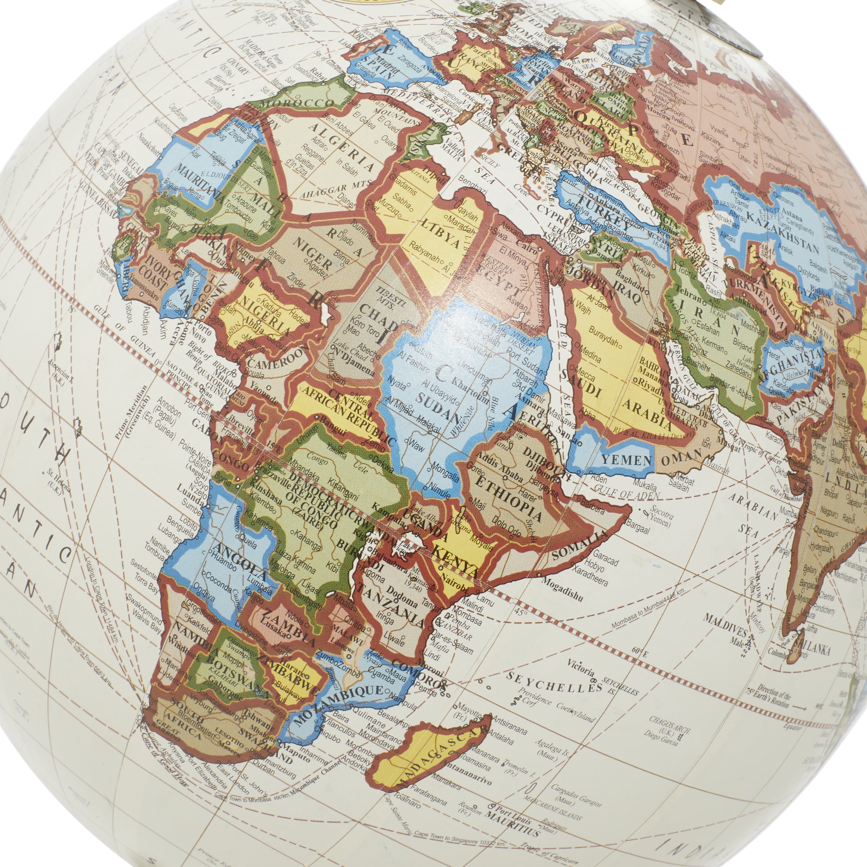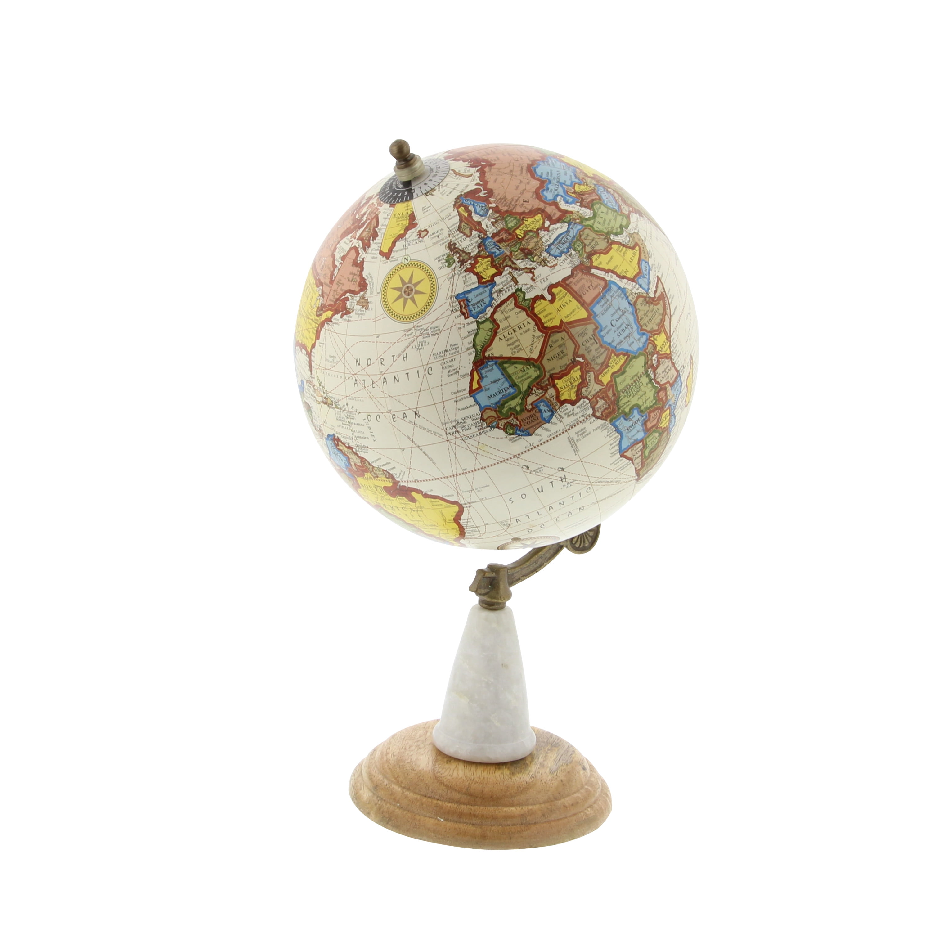 Place this globe on any counter or table to show your love for traveling. Embark on an exciting adventure with this world globe decor. Embark on an exciting adventure with this world globe Decor. This item ships in 1 carton. This world globe measures 8" diameter. Suitable for indoor use only. Marble is a product of nature and no two pieces are exactly alike. It is prone to variations in color and/or patterns in the material that add to the beauty and charm of the piece.. Made in India. Contemporary design. DecMode Wood Globe Stand, 1 – Piece