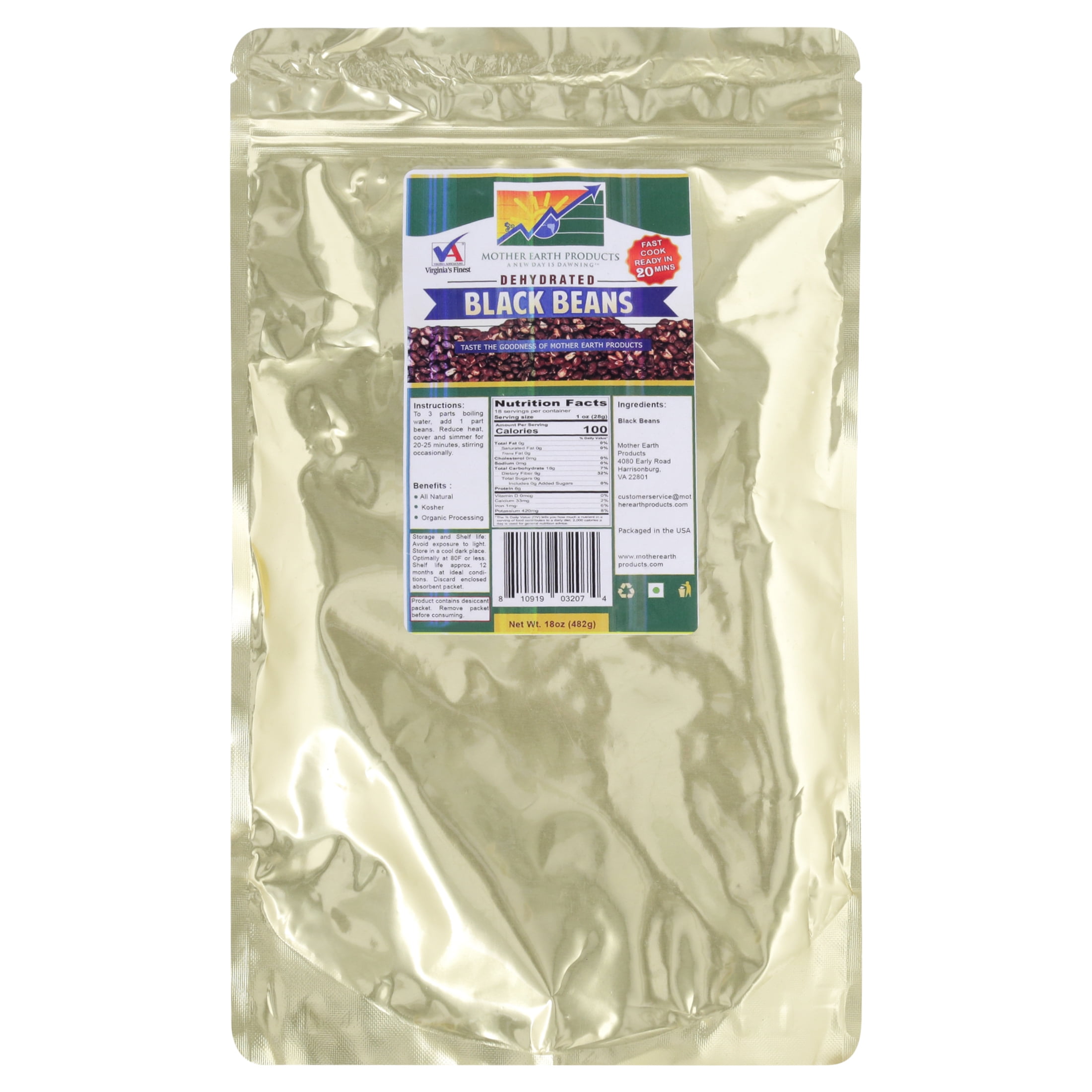 Mother Earth Products Dehydrated Instant Black Beans: a healthy & convenient addition to every area of your life without the headache: emergency preparedness, snacking, long and short term storage, traveling, everyday cooking, hiking, backpacking, spicing up your recipes, etc. use it now or later. Mother Earth Products Dehydrated Instant Black Beans is made with real, Non-GMO Black Beans, no additives or preservatives, & is kosher – a guilt-free, robust food that makes eating tasty & rewarding, without the hassle of weekly trips to the store or the worry of spoiling. It’s so delicious you won’t store it away and hope you never have to use it. Taste the Goodness of Mother Earth Productsgreat flavor; portable; nothing added; easy to reconstitute, short cook time; won’t spoil; long term storage; short term storage; emergency preparedness; convenient for all cooking situations; USA beans