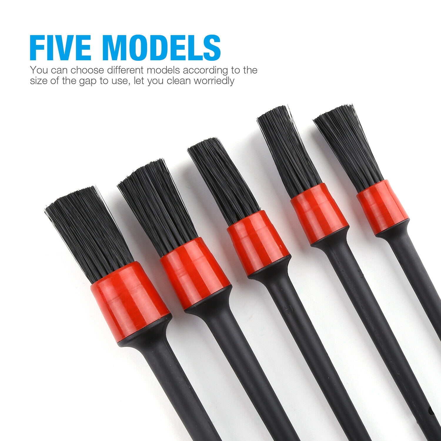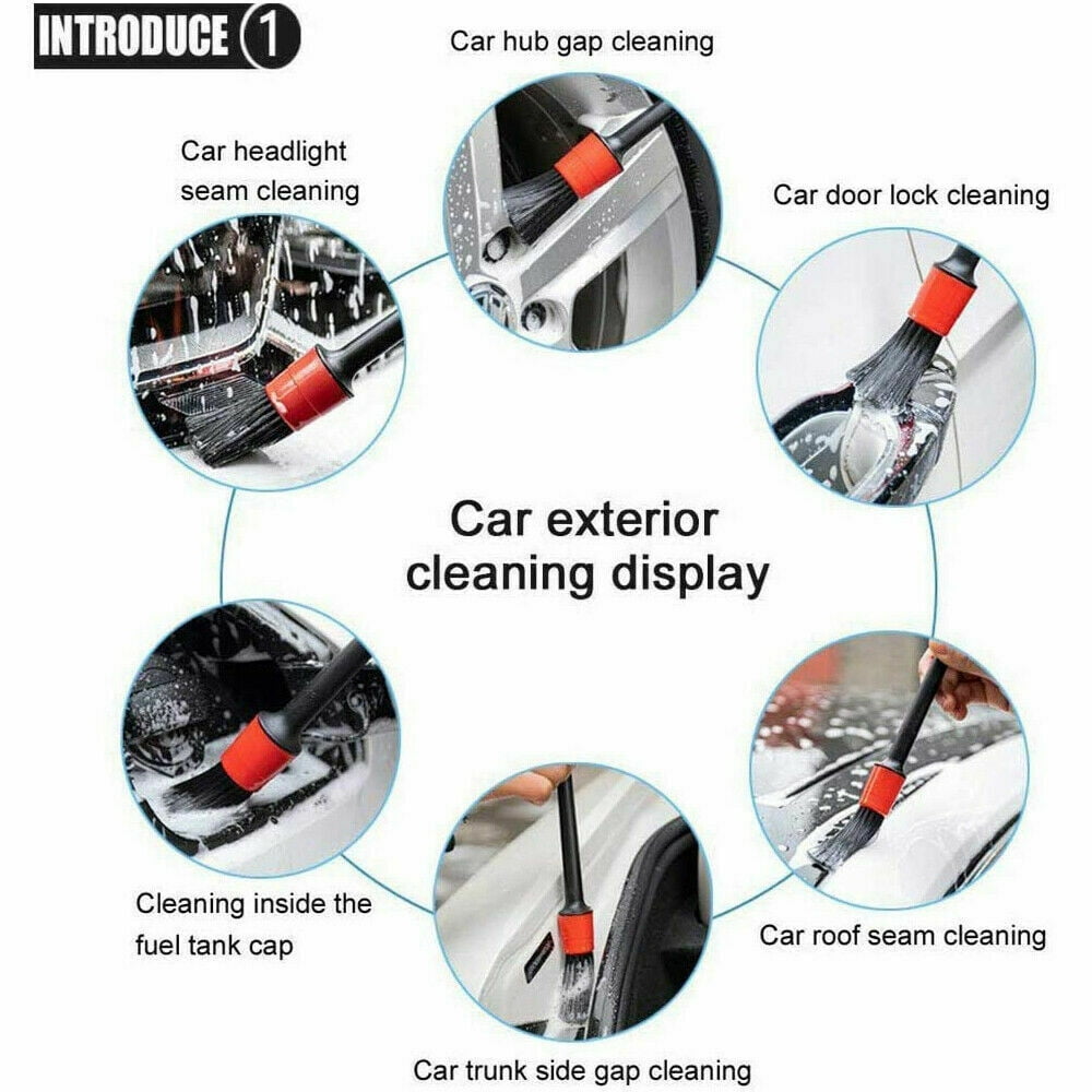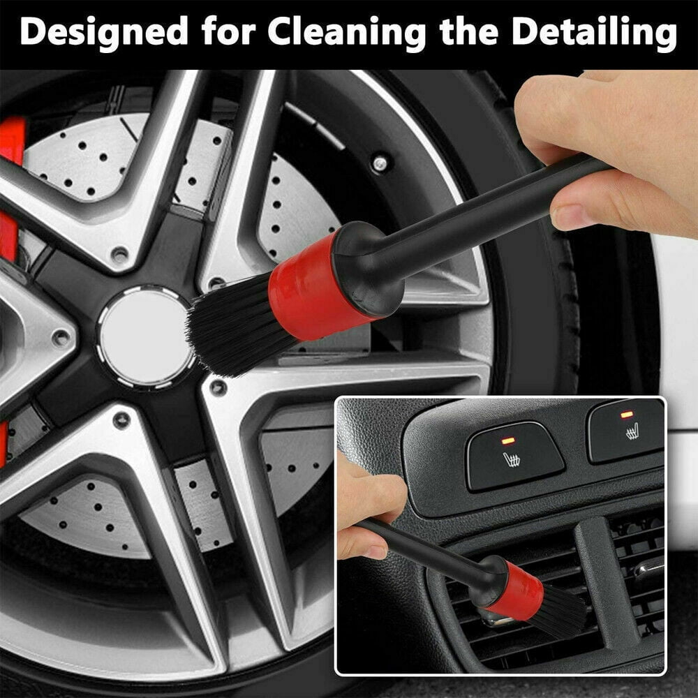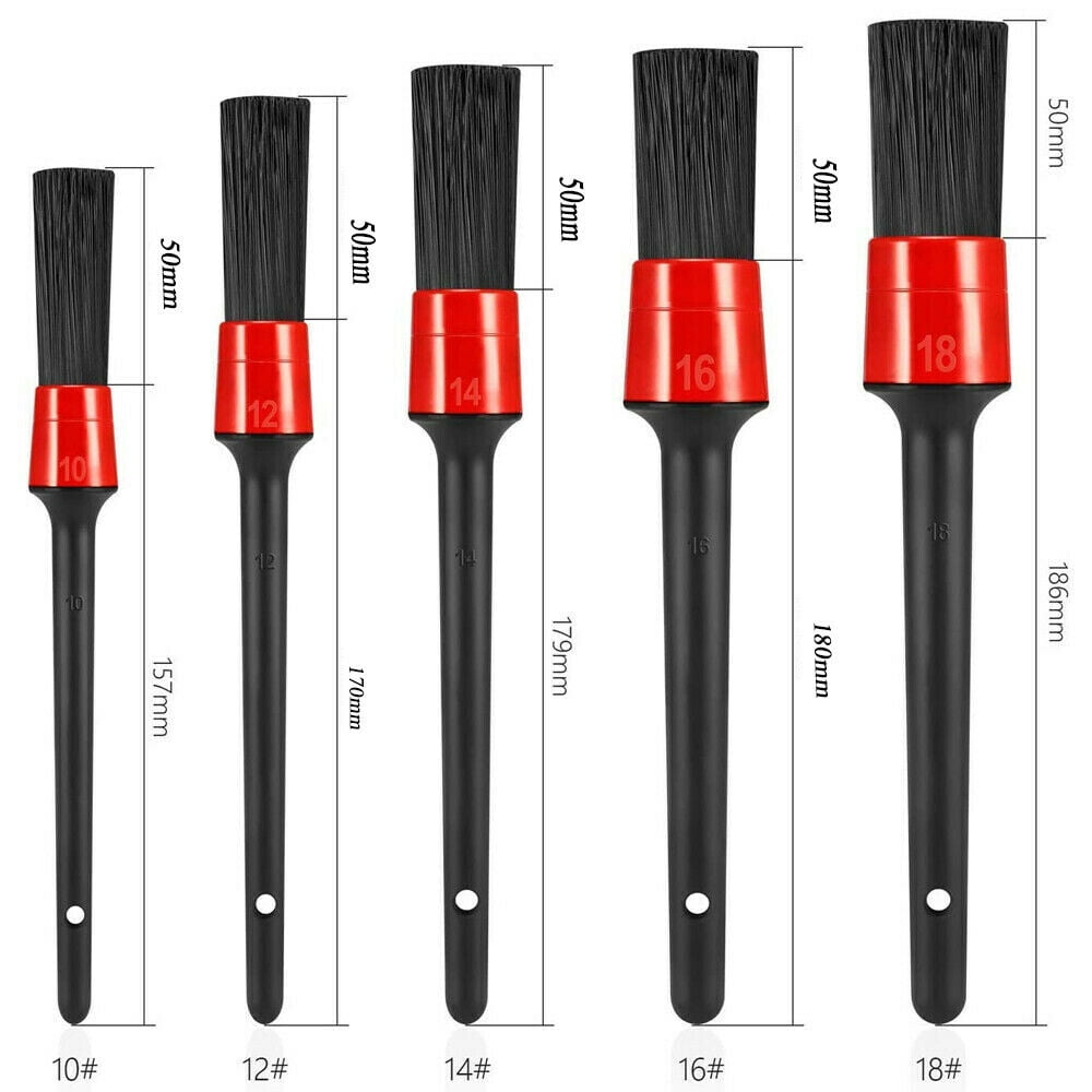 Detailing Brush Kit (Set of 5), Natural Boar Hair Mixed Fibre Beech Handle, Automotive Cleaning Brushes Wet & Dry Use Scratch Free for Interior Exterior Leather Emblem Wheel Tire Nut