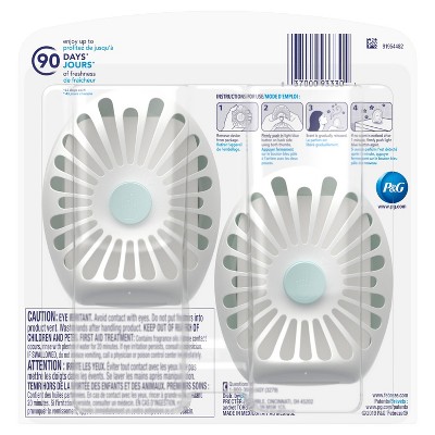 Freshen up your bathroom, closet or laundry room with this automatic air freshener designed just for smaller spaces. With the push of a button, you’ll enjoy a refreshing fragrance for up to 45 days. Designed for small spaces. Ideal for bathrooms, laundry rooms, dorms, under sinks, shoe closets and more. Automatic air freshener dispenses fragrance for up to 45 days – simply push a button to activate. No batteries or plug required. Compact design offers a sleek look to blend easily with your d�cor. Linen Sky fragrance offers a refreshing scent.Febreze� Small Spaces Air Fresheners, Linen Sky�