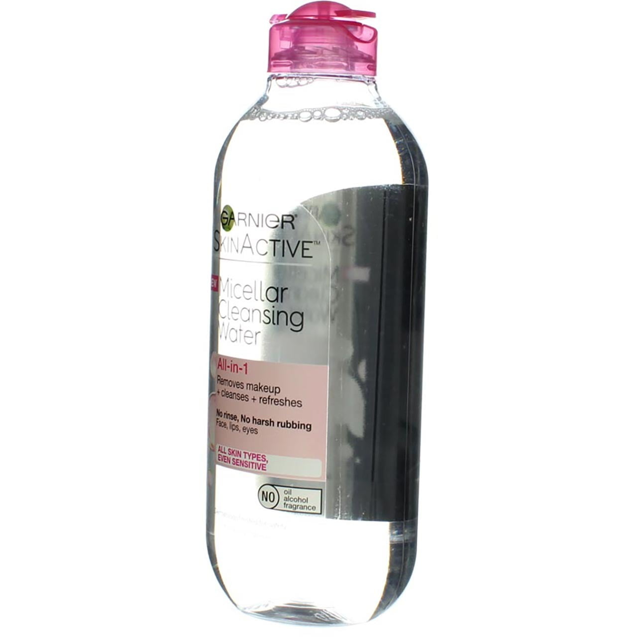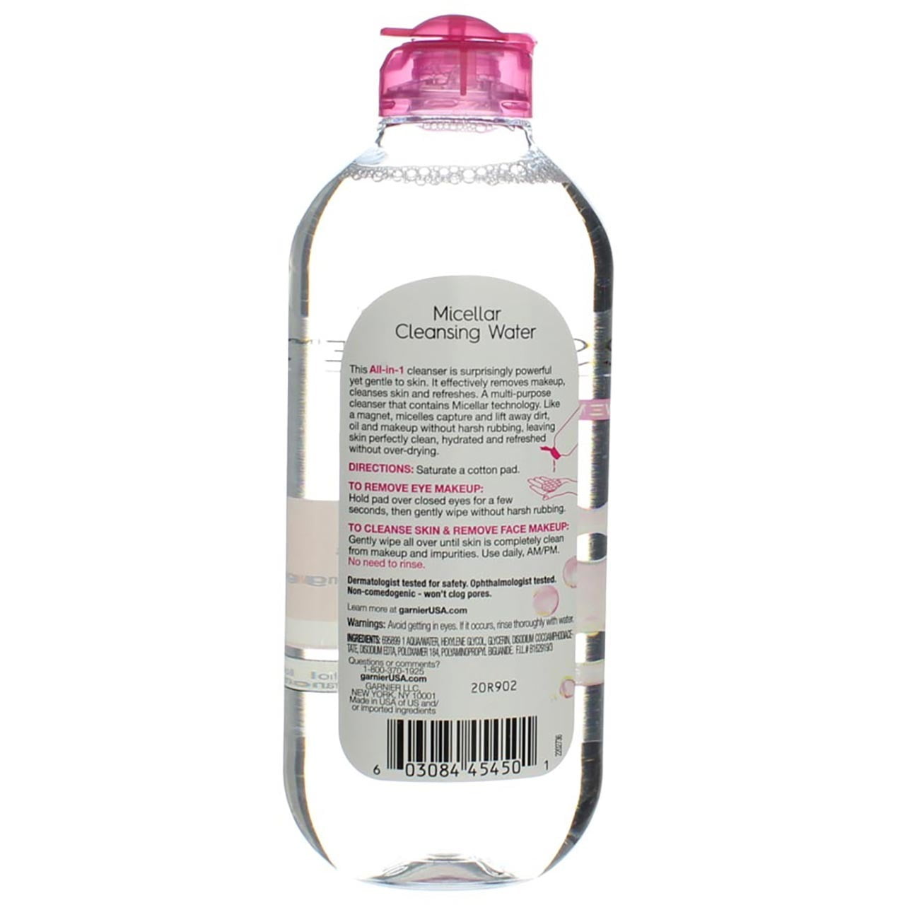This all-in-1 micellar cleansing water is a facial cleanser and waterproof makeup remover that is surprisingly powerful, yet gentle on skin. This micellar water for all skin types effectively cleanses, removes waterproof makeup and refreshes skin. Like a magnet, micelles capture and lift away dirt, oil and makeup without harsh rubbing. This facial cleanser and waterproof makeup remover cleanses to remove stubborn makeup, leaving skin clean without a greasy residue. This Garnier micellar water is gentle on skin and can be used to remove face makeup and waterproof eye makeup. This gentle cleanser is paraben-free, fragrance-free, sulfate-free and silicone-free. Based on Nielsen data for dollar and unit sales in food, drug and major discount retailers during the latest 52 week period ending 8/26/17.