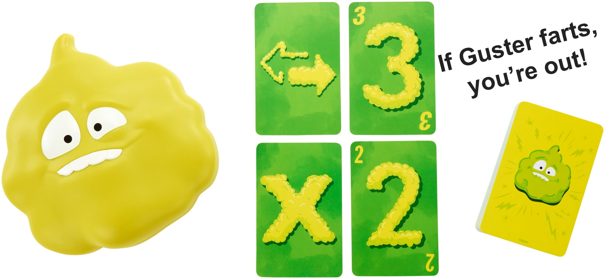 - Players take turns playing Gas Out Number cards in their hand and pressing Guster as many times as shown