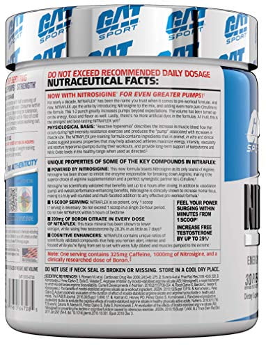 GAT Clinically Tested Nitraflex, Testosterone Enhancing Pre Workout, Blue Raspberry