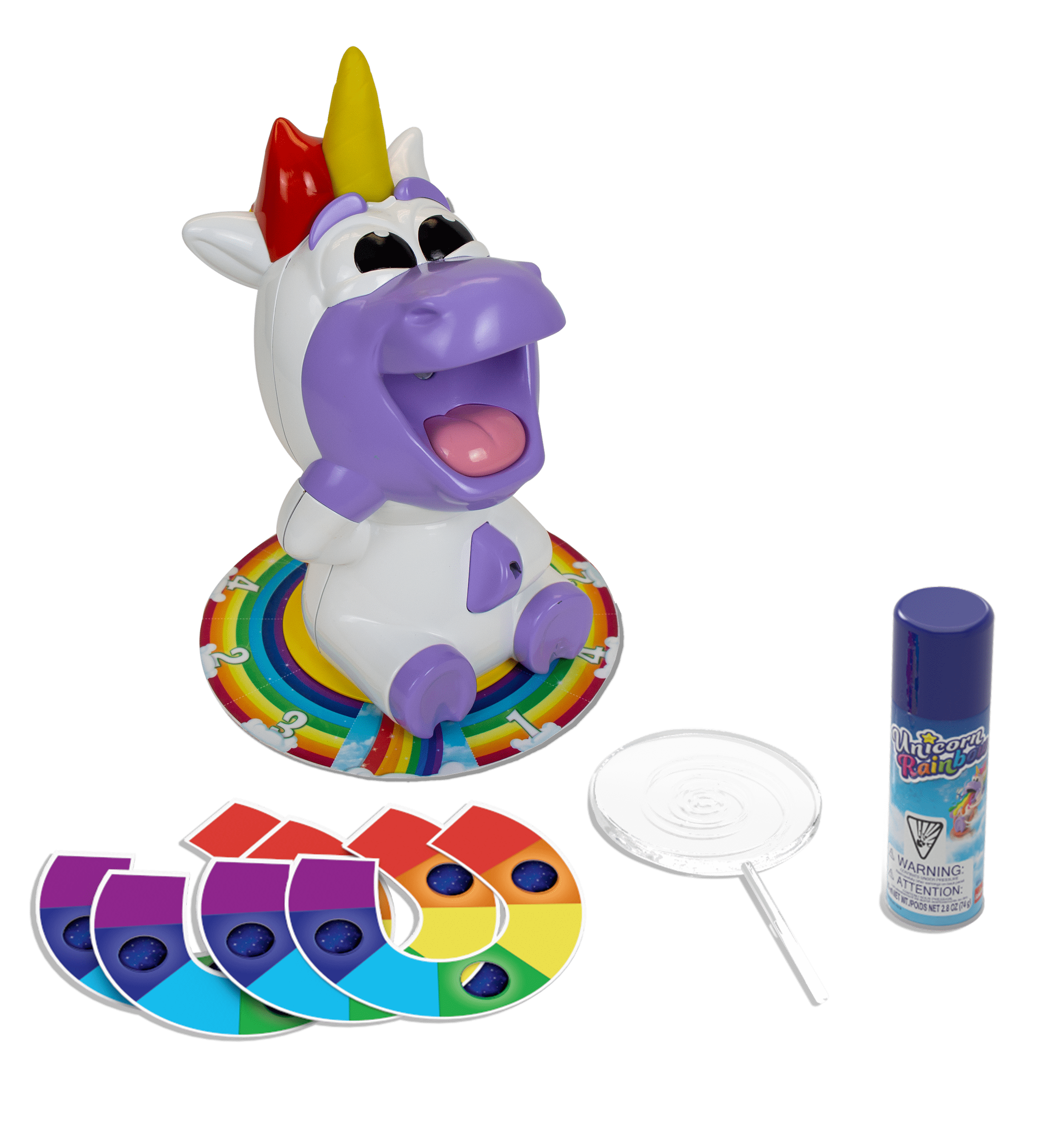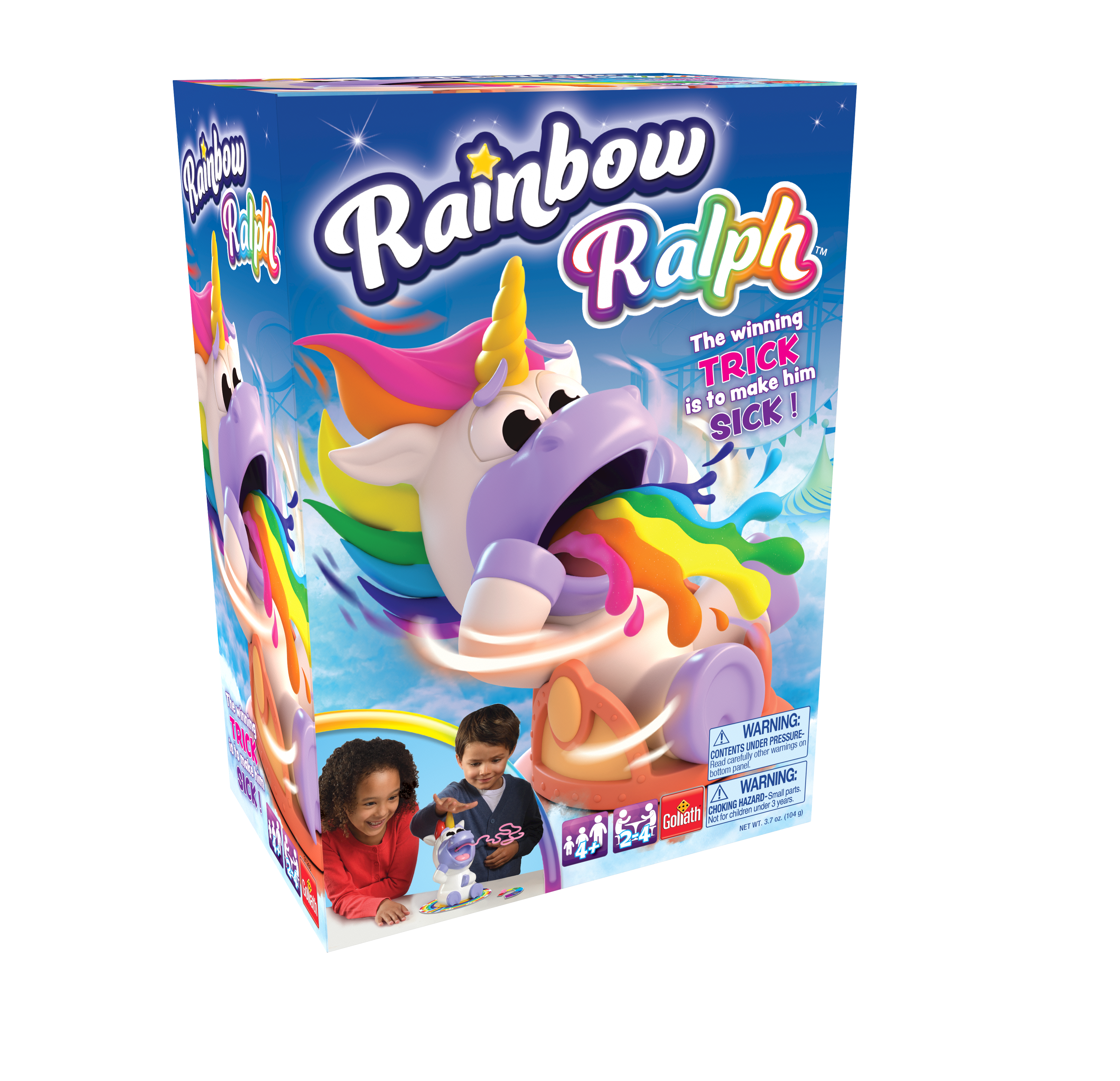 Join Rainbow Ralph on this roller coaster ride of fun! Spin him around and around until he gets dizzy. With a bit of luck, he’ll get sick. If he "Ralphs" on your turn, collect the string. The first player to collect 3 piles of string wins the game! For 2-4 players, ages 4 and up.