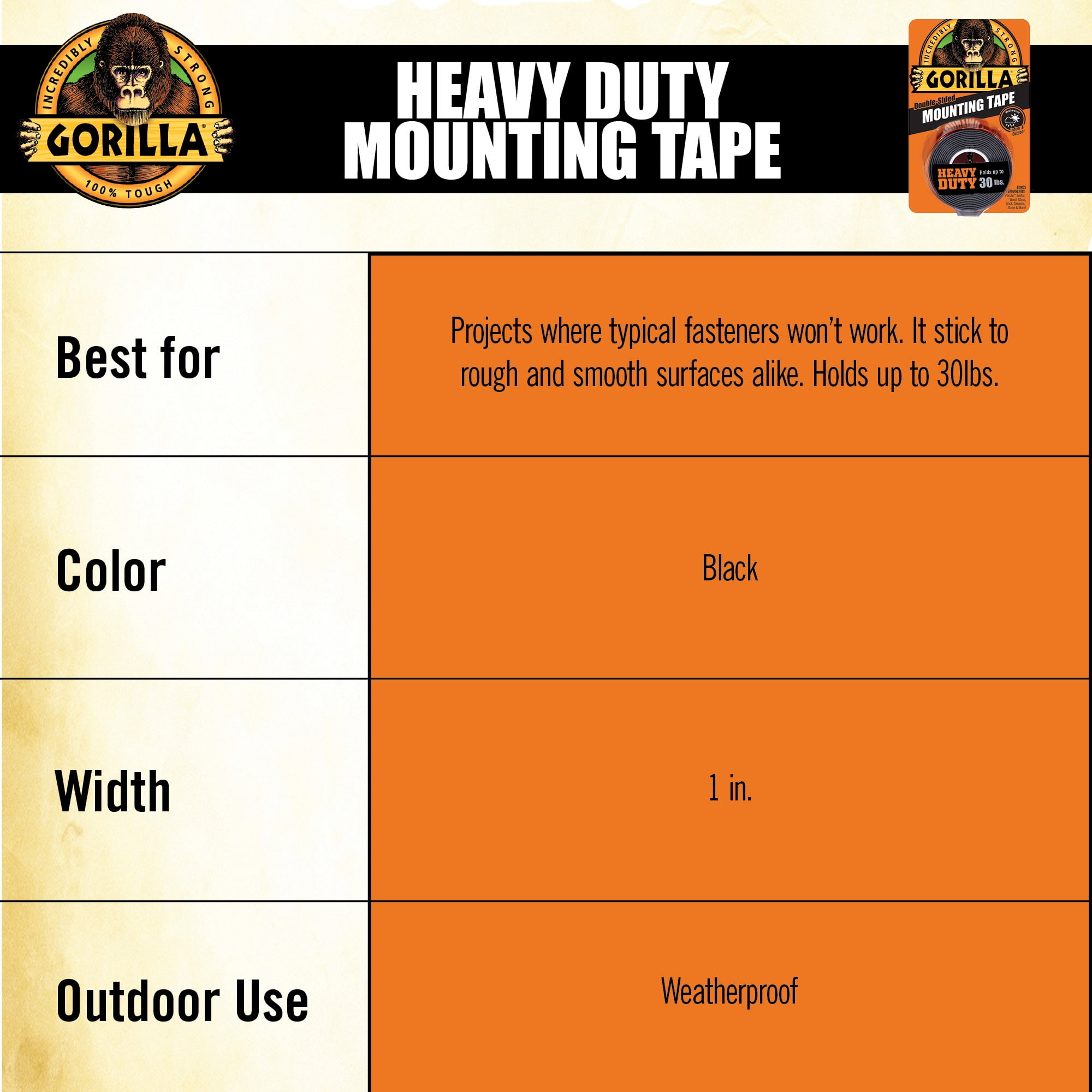 Gorilla Tough & Clear Mounting Tape Squares are clear, double-sided, 1-inch squares of tape that mount in an instant. Once secured, they create a permanent, weatherproof bond. These crystal clear squares won’t yellow over time. Used all together, Mounting Tape Squares can hold up to 7 pounds. Gorilla Tough & Clear Mounting Tape Squares are perfect for indoor and outdoor projects, sticking to both smooth and rough surfaces. Completing DIY projects is easy with these pre-cut, double-sided squares. Create, build, and repair!
