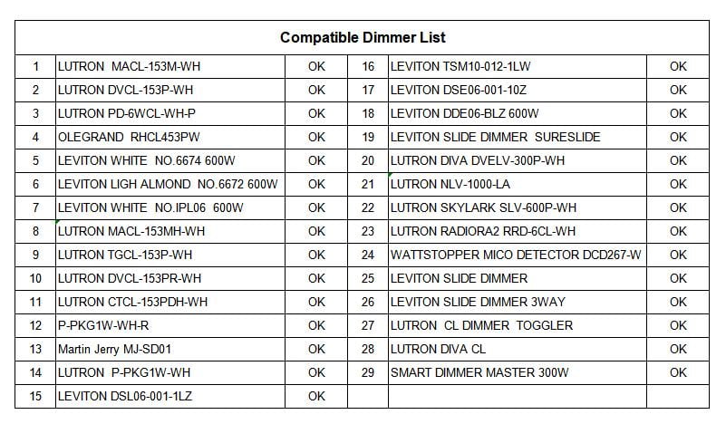 - Dimmable