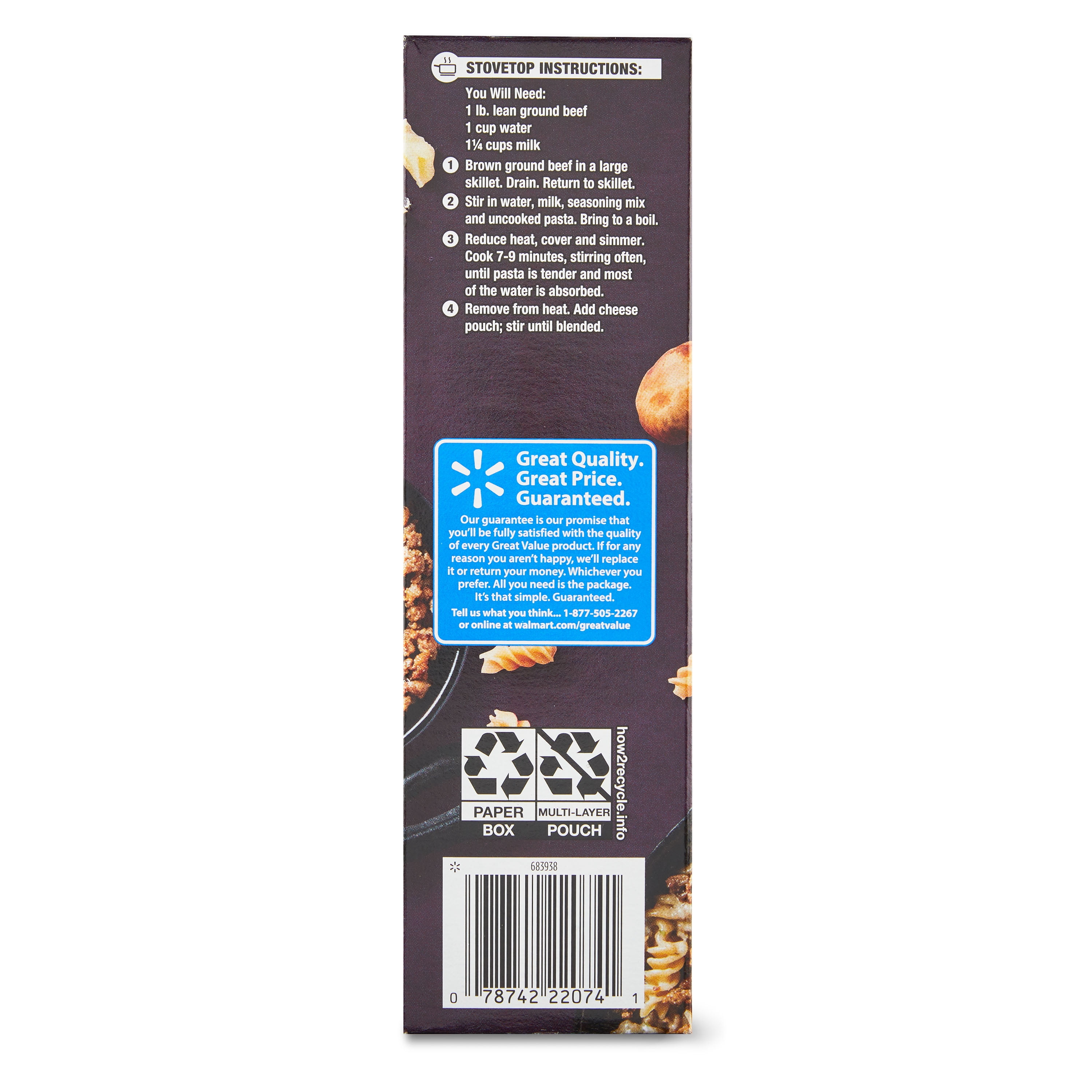 Cook up a meal the whole family will enjoy with the Great Value Gluten-Free Stroganoff Dinner Kit. This 11.6-ounce package includes brown rice pasta, cheese sauce, and traditional stroganoff seasoning. Just add ground beef, water, and mill to complete the meal. Brown the ground beef in a large skillet. Drain, and return to skillet. Stir in water, one cup of milk, seasoning mix, and uncooked pasta, and bring everything to a boil. Once the water is bubbling, reduce heat, cover, and simmer for about seven to nine minutes, until the pasta is tender, and the water is absorbed. Remove from heat, add the cheese pouch, and stir until blended. And voila! You have a gluten-free meal for the whole family. Pick up the Great Value Gluten-Free Stroganoff Dinner Kit today!
