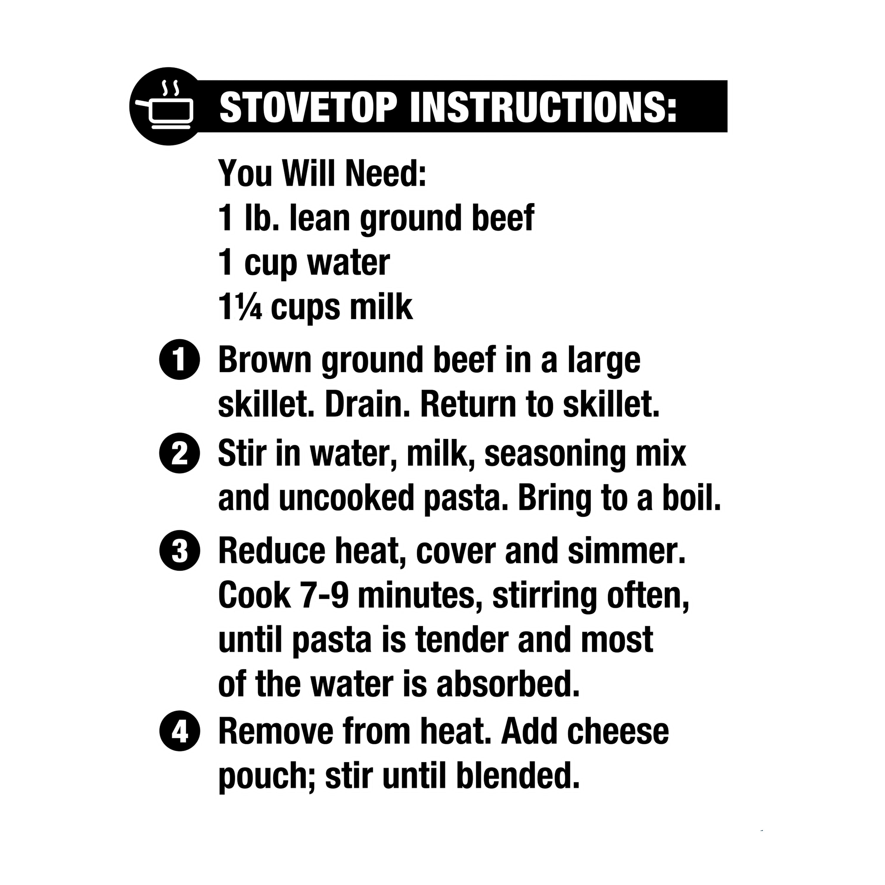 - Just add ground beef, water, and milk