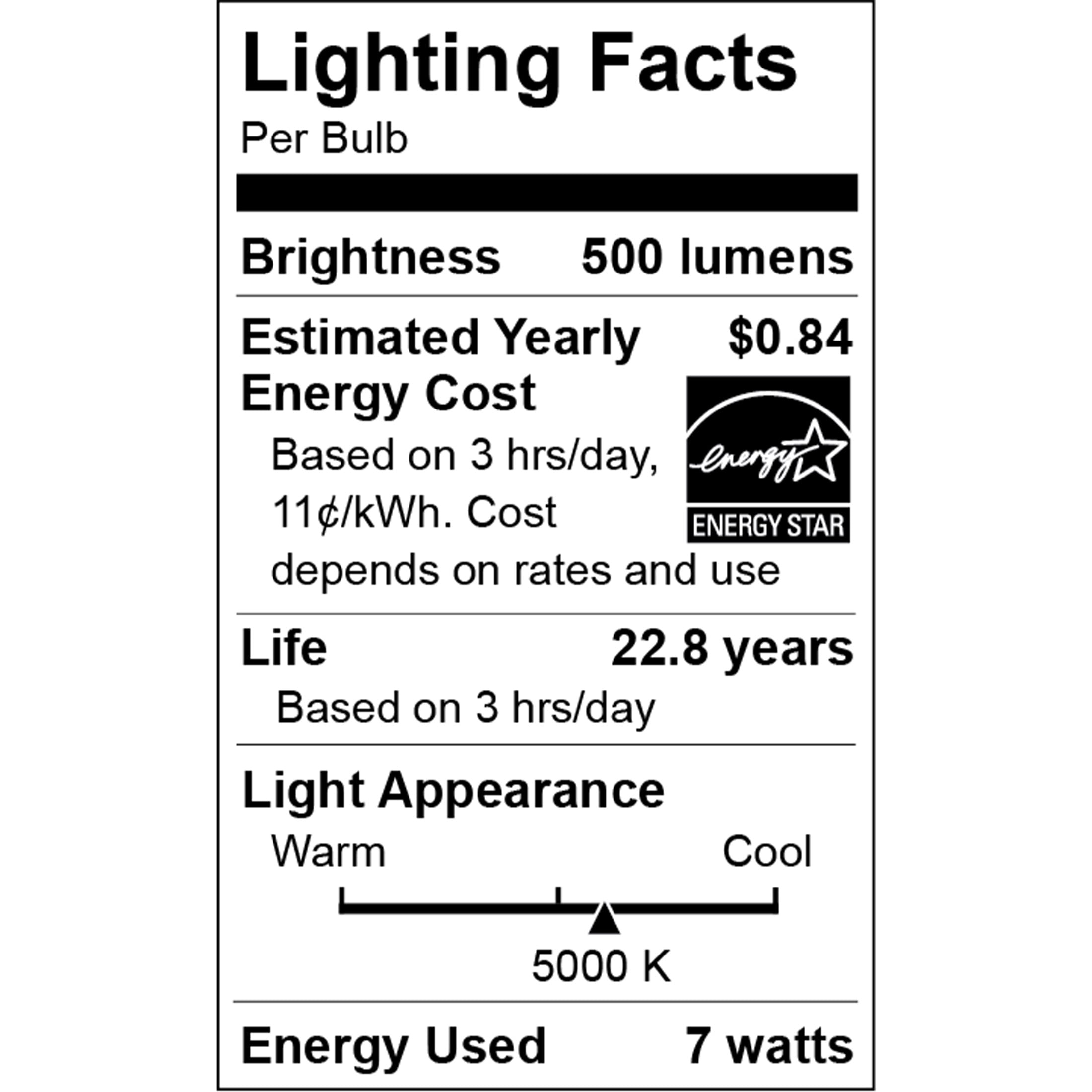 Great Value LED light bulbs are a great option for their cost and energy efficiency. Built for durability, the solid structure of the LED bulbs will outlast any incandescent bulb while using up to 80% less energy. Need help deciding between a Daylight or Soft White LED? Consider the atmosphere you are hoping to create with your new energy efficient LED bulb. The Daylight LED light bulb creates a crisp natural effect and will be the right choice for Display areas, security lighting, garages, and task lighting. The Soft White LED light bulb will provide a much more calming effect. This bulb is generally chosen to deliver a cozy and inviting ambiance. This is the recommended choice for your living room, kitchen and bedroom lighting.