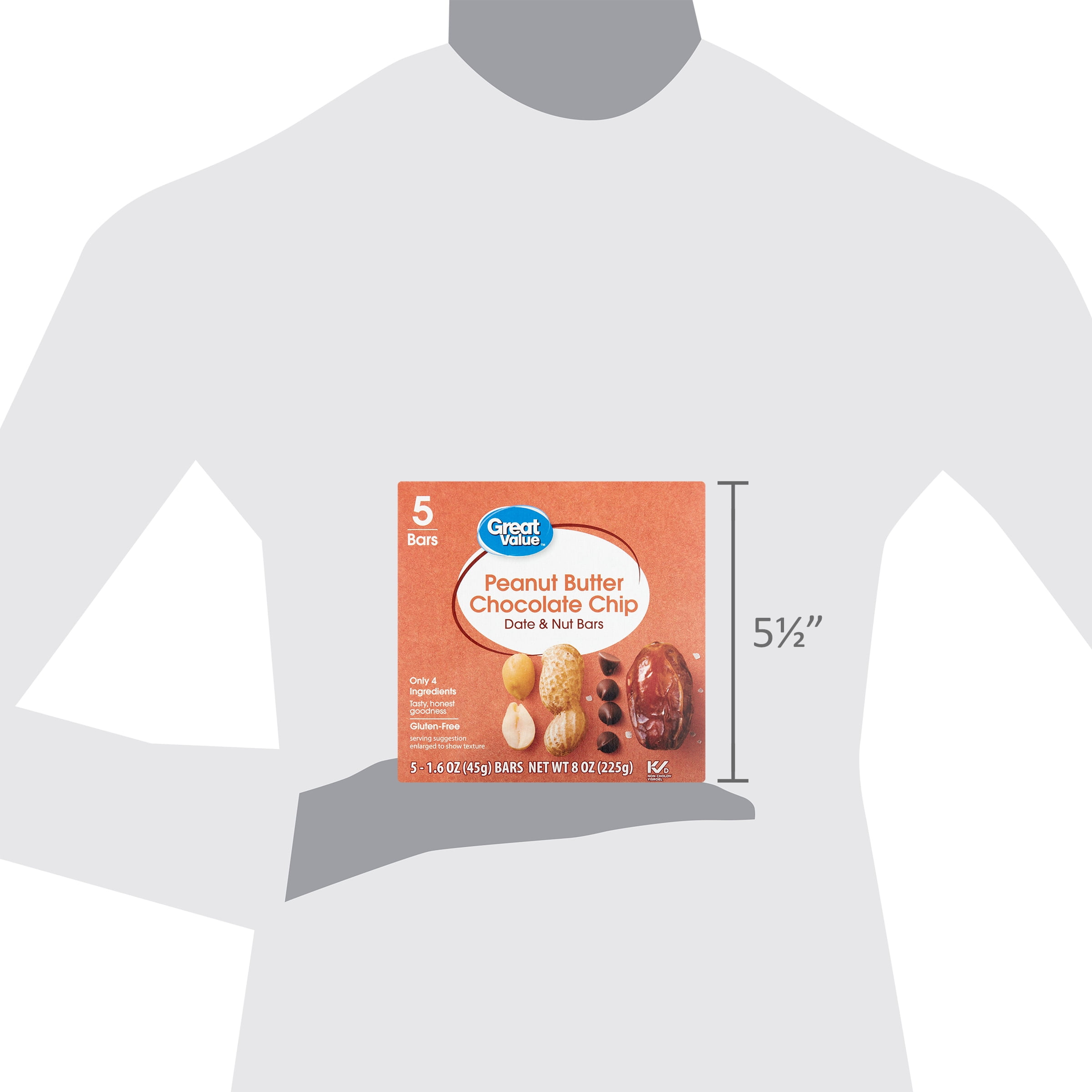 Great Value Peanut Butter Chocolate Chip Date & Nut Bars, 8 oz, 5 Count: