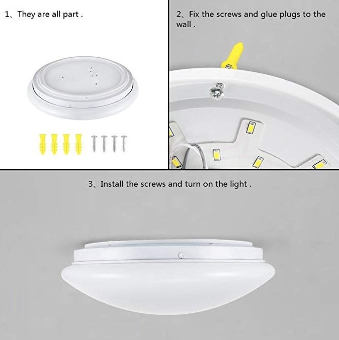 iLett LED 15 Watts Flush Mount Fixture Ceiling Light, Mushroom, Ultra Light Weight, 10.5 inches, 1200lm, 6500K, 85V-265V