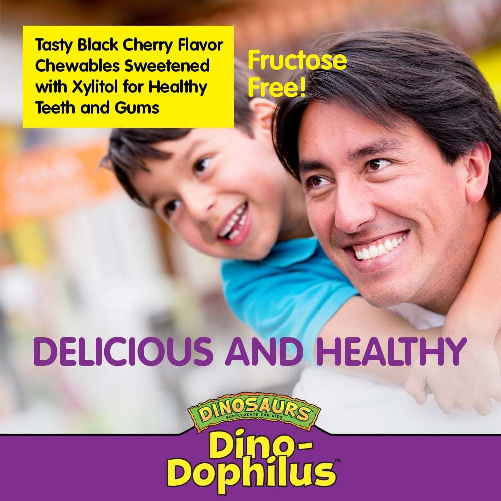 - Fun-to-Chomp Chewables: Made with a delicious natural black cherry flavor, our chewable kids probiotic comes in fun dinosaur shapes and is sweetened with xylitol for healthy teeth & gums.