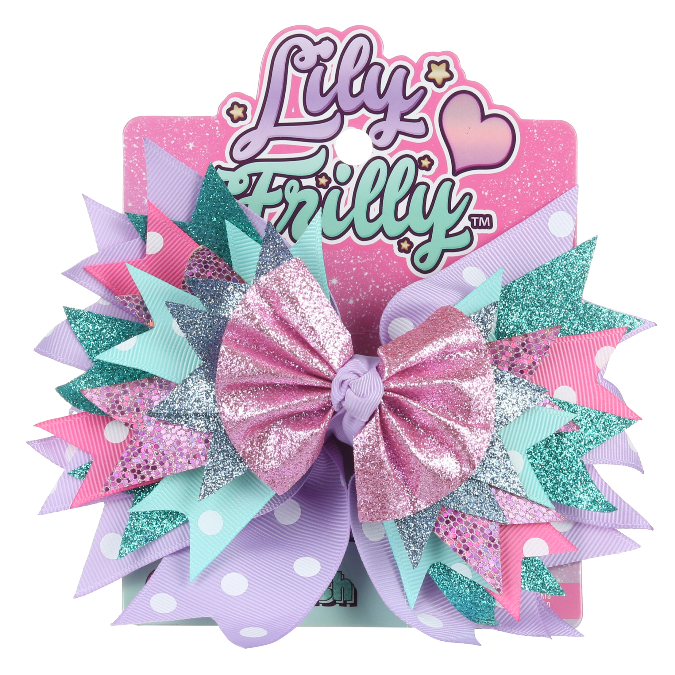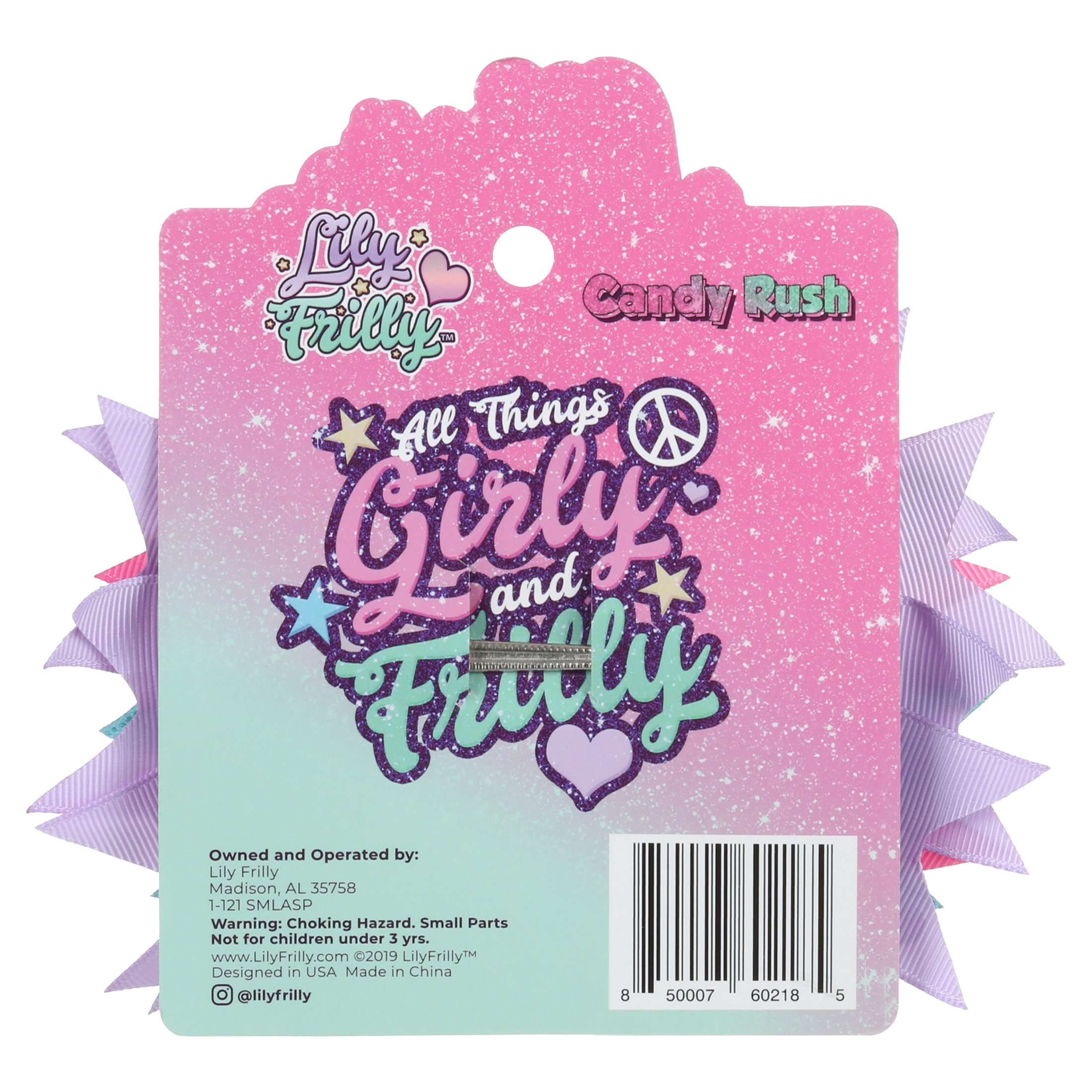 What’s sugar and spice and everything nice? The sweet girl who gets to wear this Lily Frilly Candy Rush Hair Bow. This unique accessory is designed with layers of grosgrain ribbon, glitter ribbon in turquoise and pale pink, and topped with a perfectly centered, mini bow. It’s just right for your sweetest girl.• Easily glides onto hair • Does not tug or pull at the hair • Stays put throughout the day • Perfect for everyday wear or special occasions • Can be worn with many different hairstyles • Made of quality materials • Suitable for girls of all ages