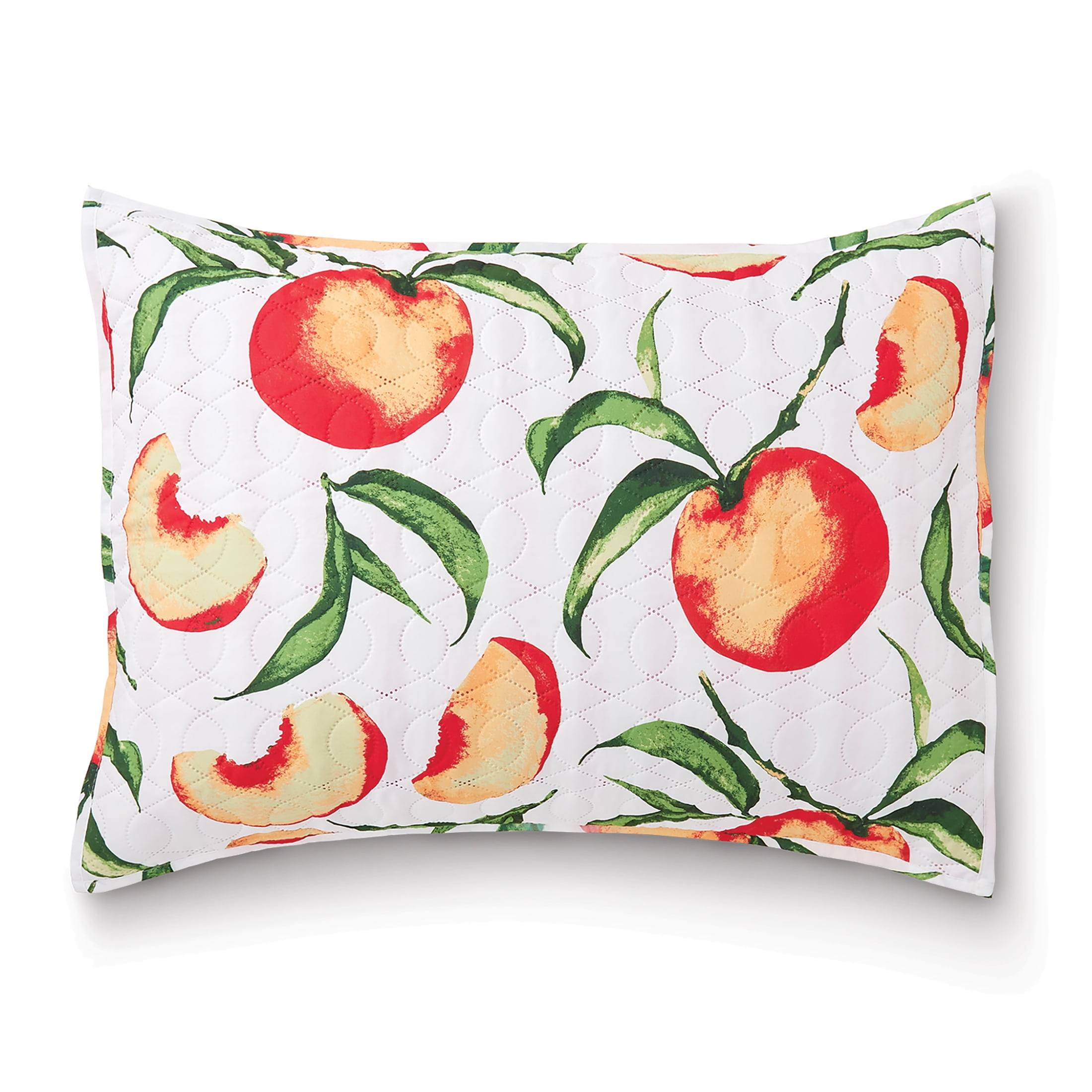 Give your bedroom décor a sweet touch with the Mainstays Peaches Stripes Reversible Quilt Set In-a-Tote. This reversible quilt features whole and sliced peaches on a white background on one side and peach and white stripes on the other for a mix-and-match look. This 3 or 4-piece bed set includes a quilt, shams, and a coordinating tote bag you can use for storage or to show off your favorite print wherever you go. Lightweight, durable, and irresistibly soft, this quilt set is made of soft polyester and is machine washable. You can keep it looking and feeling fresh by machine washing in cold water and drying on low setting.