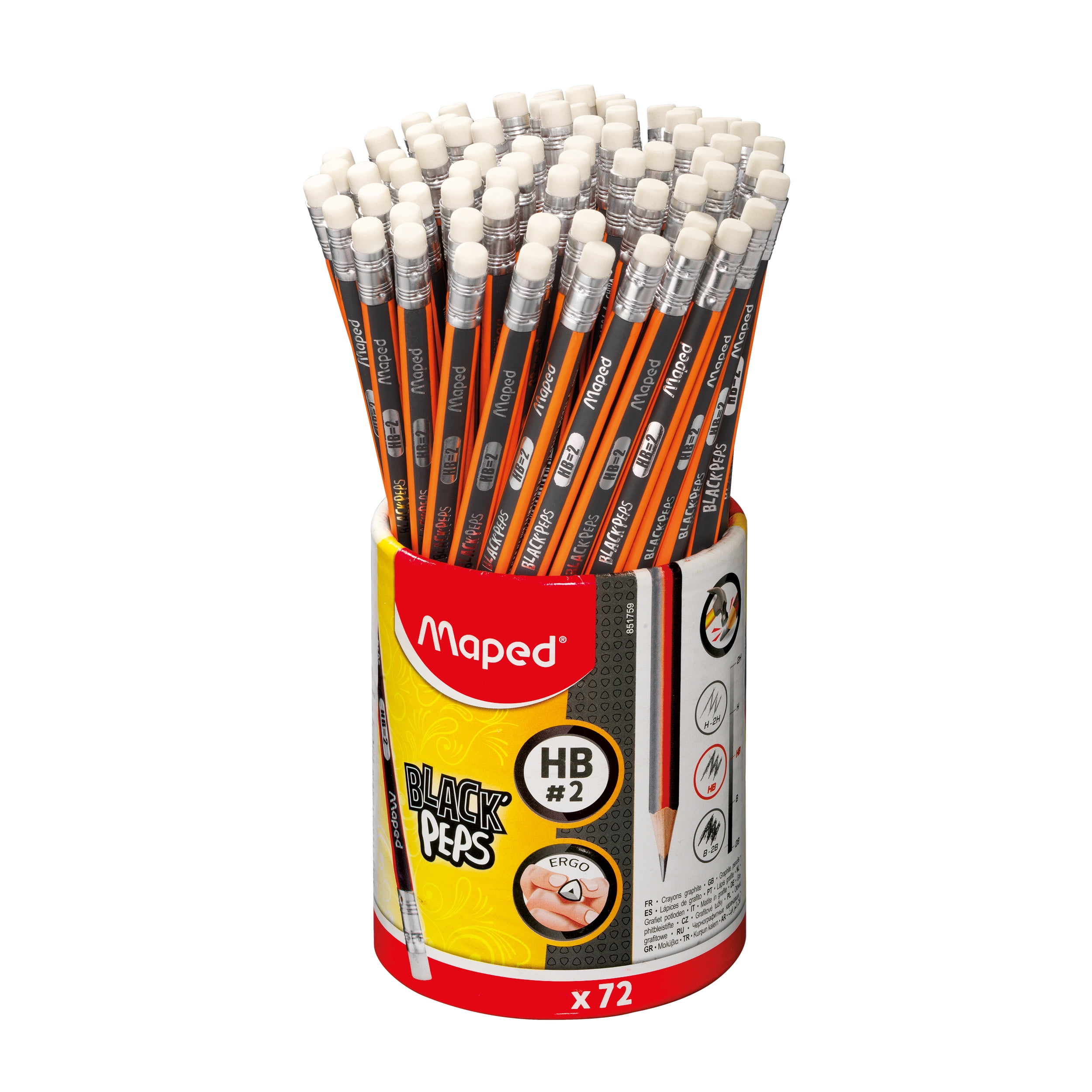 Maped Pre-sharpened Triangular Graphite #2 Pencils in Reusable Cup – 72 Pack