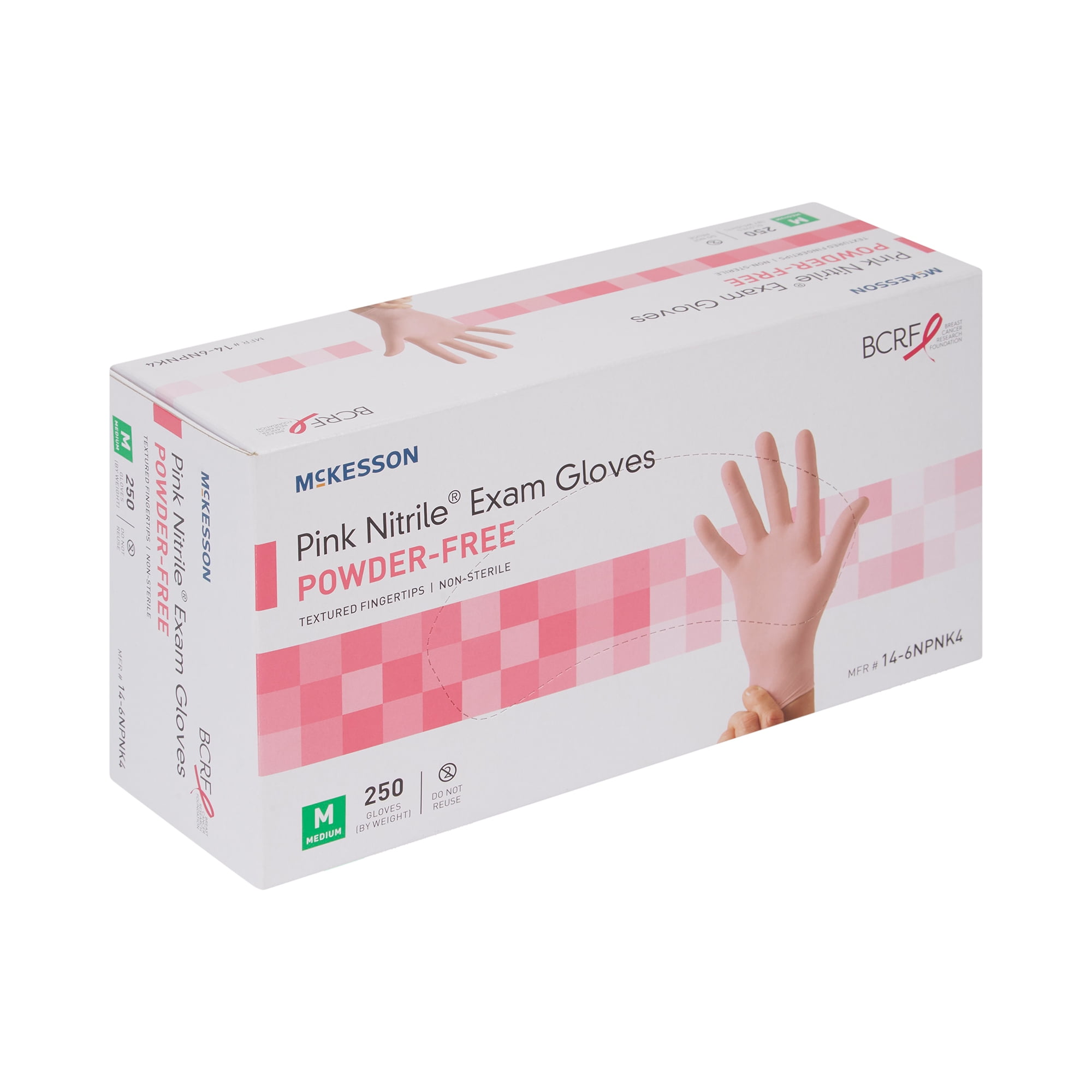 McKesson Pink Nitrile Exam Glove Powder Free MEDIUM 14-6NPNK4 250 per Box