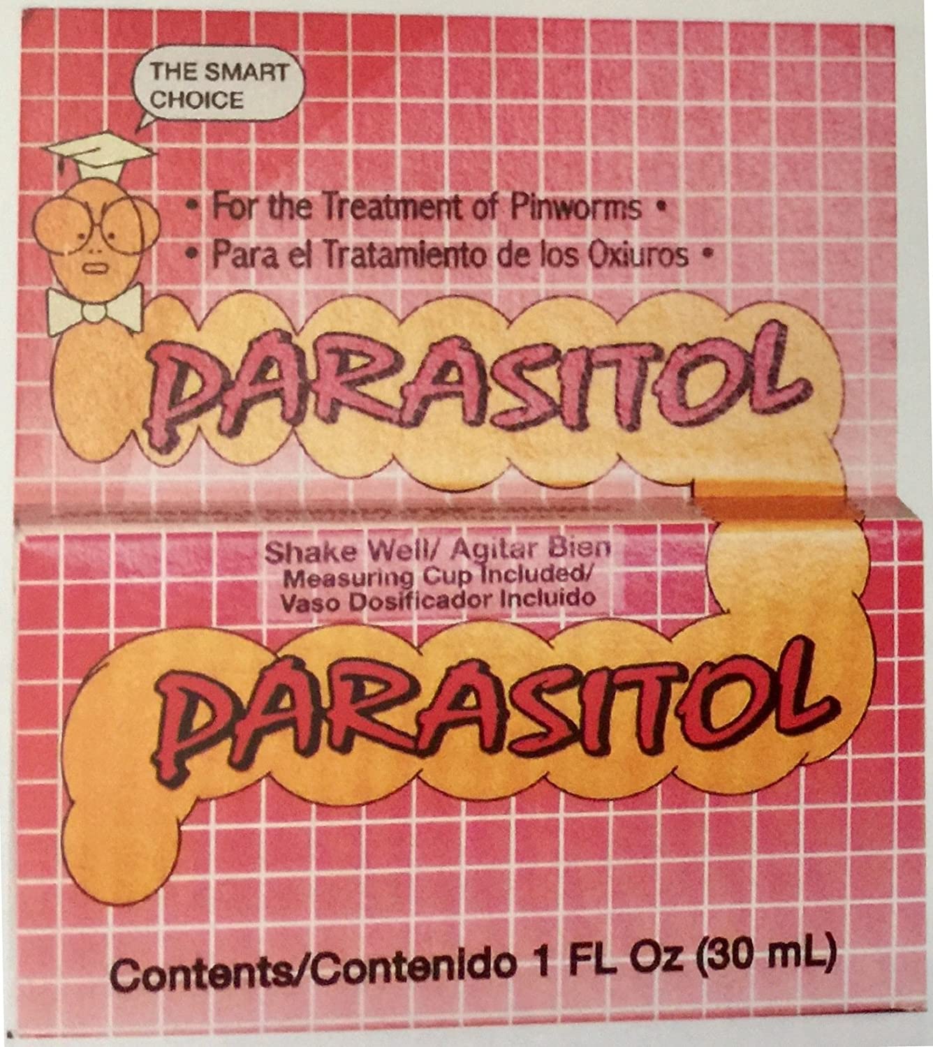 Parasitol 1 fl oz (30 ml) Pyrantel Pamoate Suspension. The smart choice. For the treatment of pin worms. For the treatment of pinworms. Shake well. Measuring cup included. Adults and Children 12 Years of Age and Over and Children 2 Years of Age to Under Twelve Years of Age: Oral dosage is a single dose of 5 mg of Parasitol per pound, or 11 mg per kg of body weight. Not to exceed 1 gm. Take only according to directions and do not exceed recommended dosage unless directed by a doctor. Medication should only be taken one time as a single dose. Do not repeat treatment unless directed by a doctor. When one individual in household has parasites. The entire household should be treated, unless otherwise advised. Abdominal cramps, nausea, vomiting, diarrhea, headaches or dizziness, sometimes occur after taking this drug, if any of those conditions persist, consult a doctor. If you are pregnant or have liver disease, do not take this product unless directed by a doctor. Protect from excessive heat and freezing. Shake well. Store at controlled room temperature. Read warnings and package insert carefully before taking this medication. Tamper Evident: Do not use if safety seal is broken or removed. 1 fl oz (30 ml) 6500 NW 35th Ave. Miami, FL 33147New product. Comes in original retail packaging. Box may show wear.