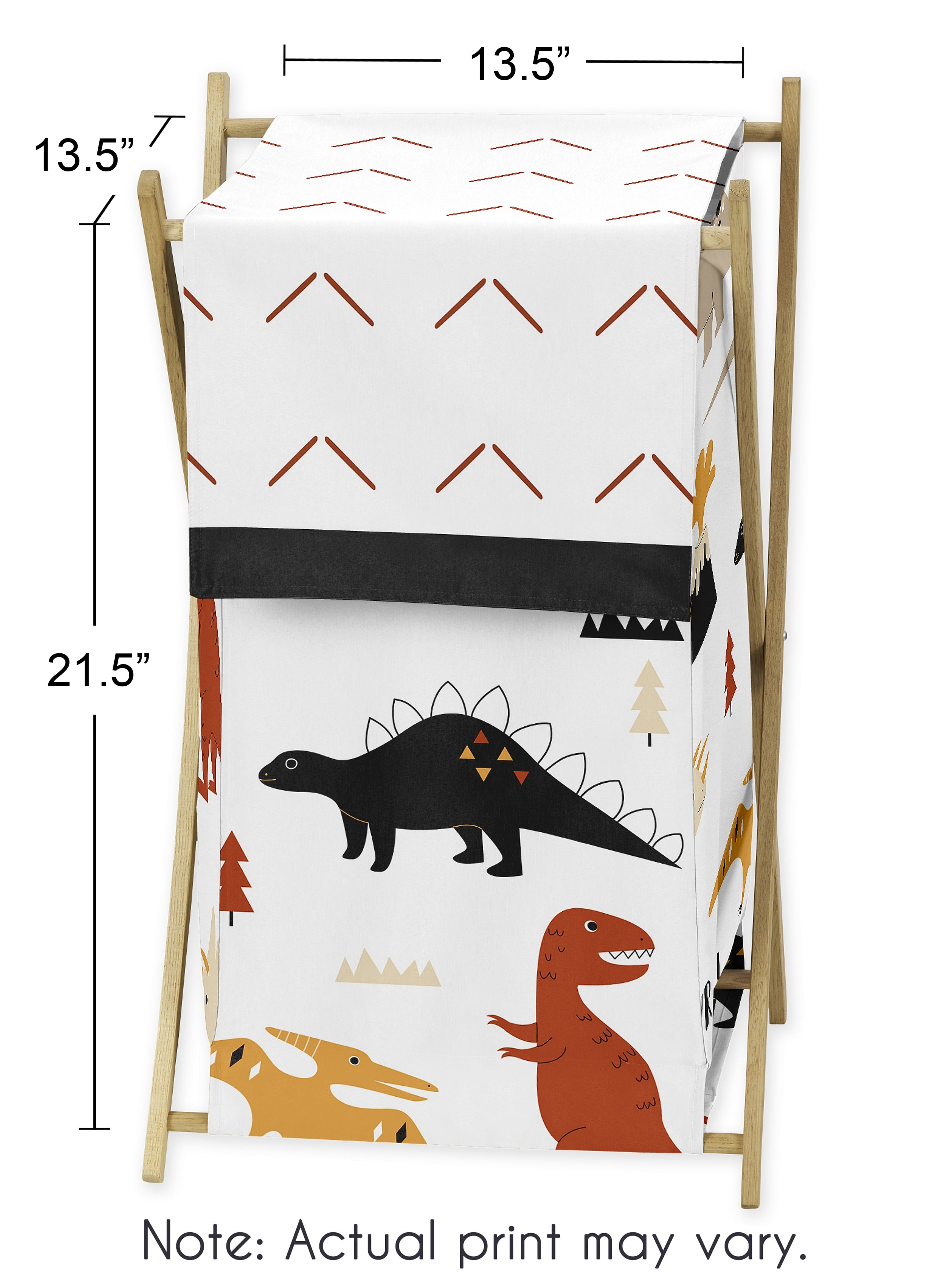 Sweet Jojo Designs coordinating stylish hamper matches exclusively with their bedding sets. Now Sweet Jojo Designs has found a way to make even the laundry look adorable. The laundry clothes hamper includes a removable body, hamper frame and a mesh inner bag that fits inside the hamper and lifts out easily for convenience when emptying and toting the laundry. The fabric flap that covers the hamper opening is easily flipped out of the way when needed. The collapsible wooden frame can be folded up for compact storage in a closet or the laundry room. Sweet Jojo Designs Mod Dino Baby Kid Clothes Laundry Hamper – Orange, Tan, Rust, Taupe, Mustard Yellow, Beige, Brown and Black Modern Dinosaur Boho Dinosaurs Arrow Chevron Herringbone Gender Neutral