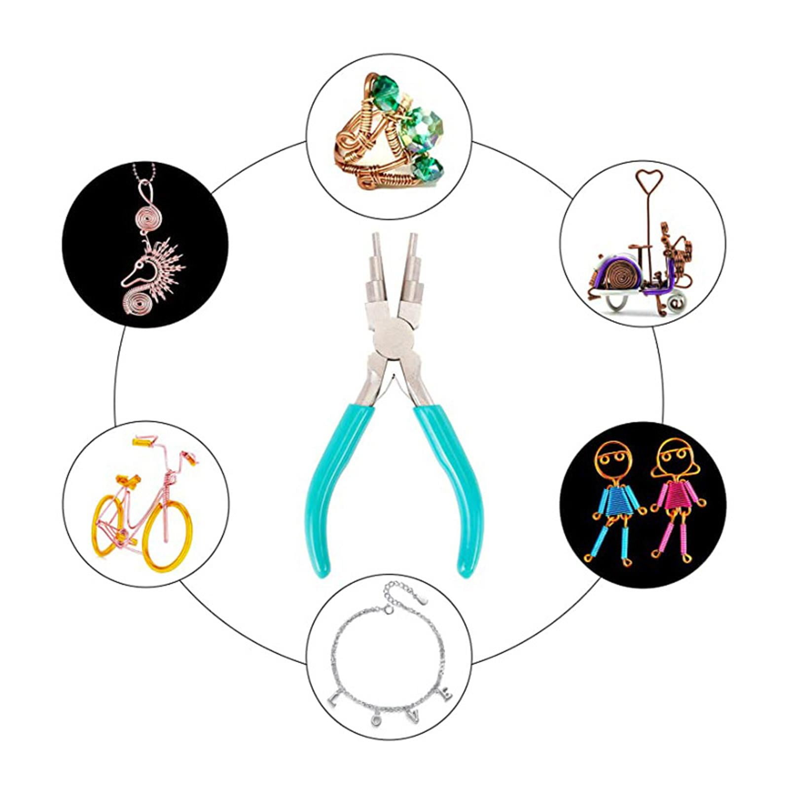 This bail making plier creates 6 different loops: 3mm, 4mm, 6mm, 7mm, 8.5mm, 9.5mm. Bend, shape, and loop metal