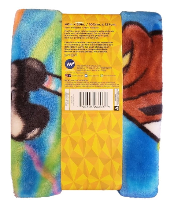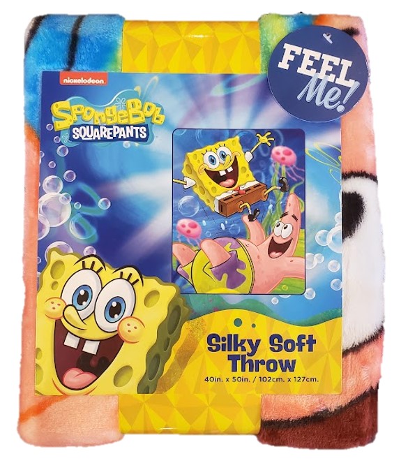 - Keep cozy in this Nickelodeon SpongeBob "Jumping Jellyfish" silk touch throw blanket by The Northwest Group, LLC. SpongeBob and Patrick are super excited in the ocean on this 40 inch x 50 inch silky-soft and warm throw with decorative binding around all edges. Use it in the bedroom,on the go, or cuddle under it in the den while watching TV! This throw is made of 100% polyester. Machine wash and dry for easy care.
